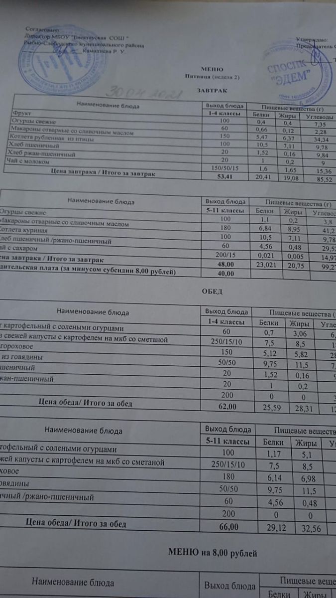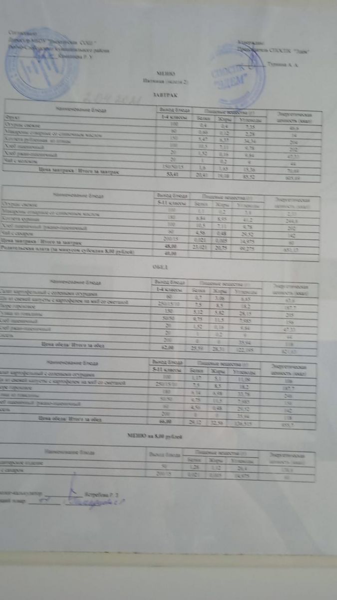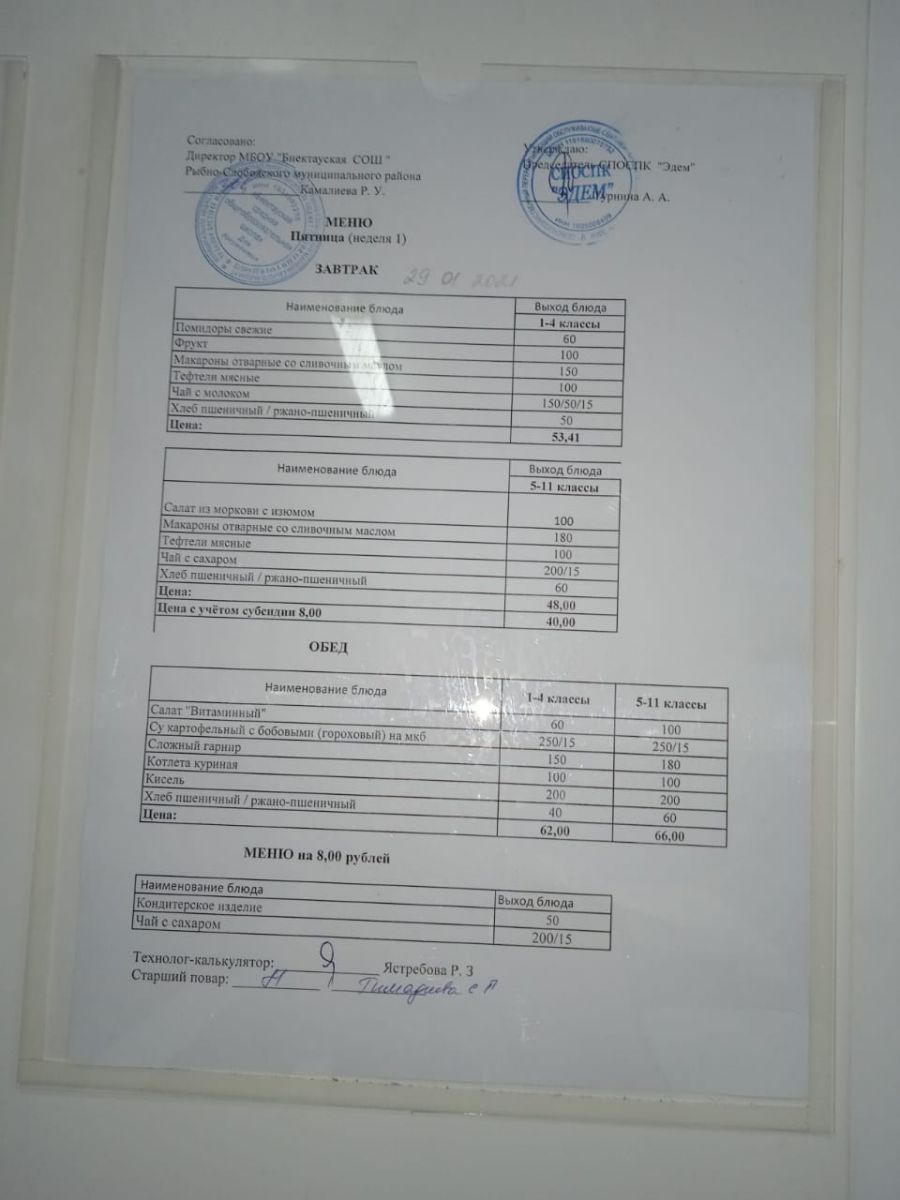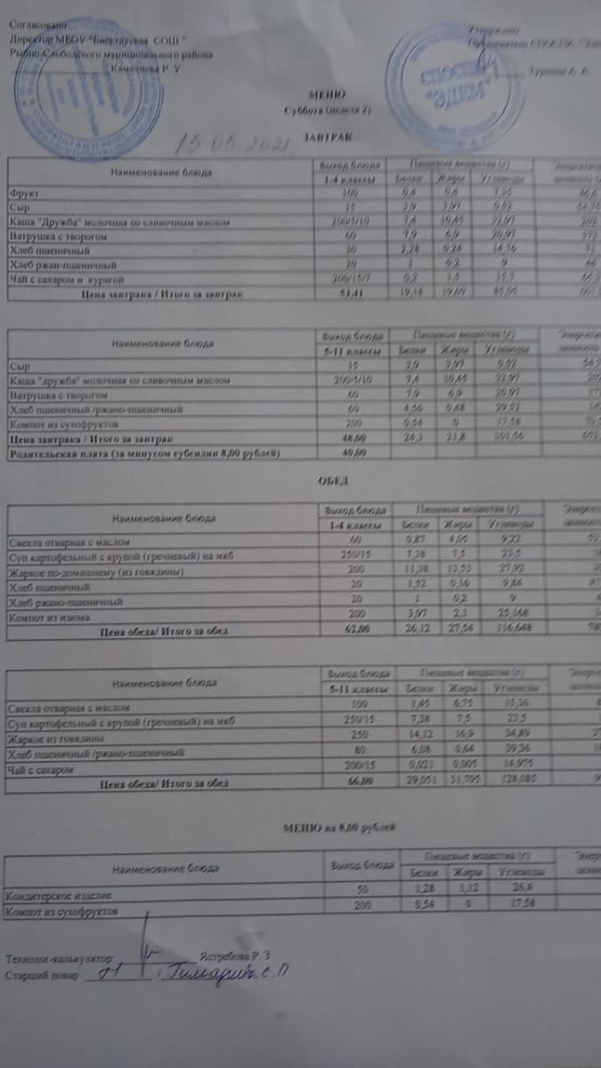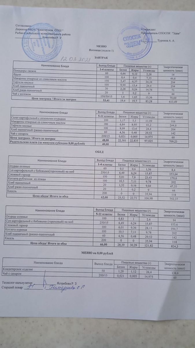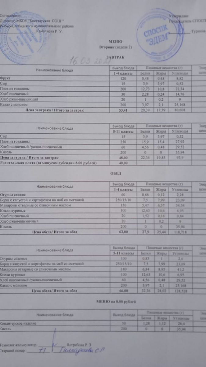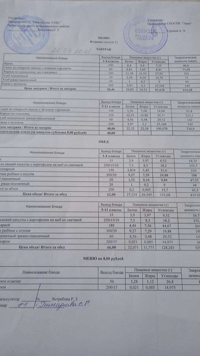 Примерное двухнедельное меню для 5-11 кл 2 полугодие
