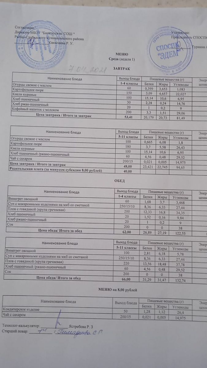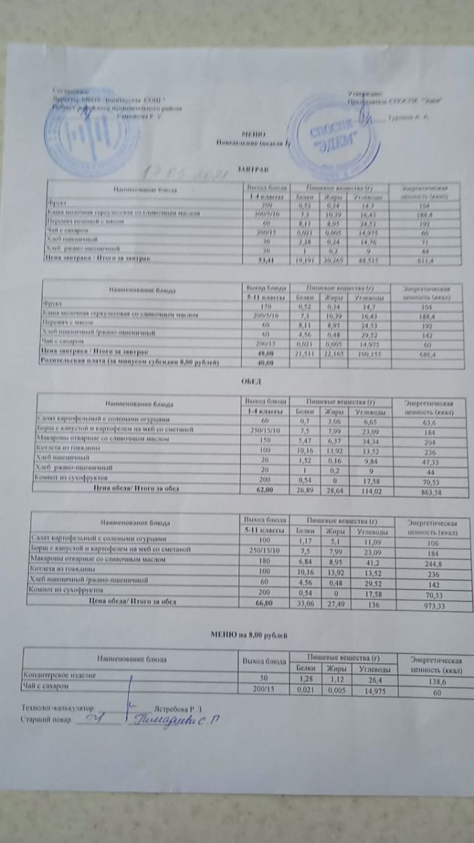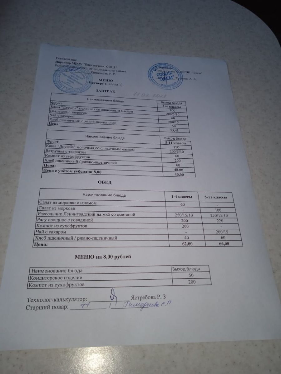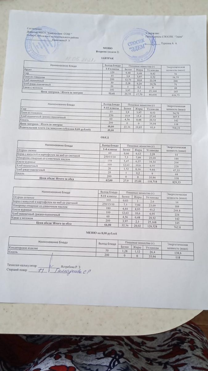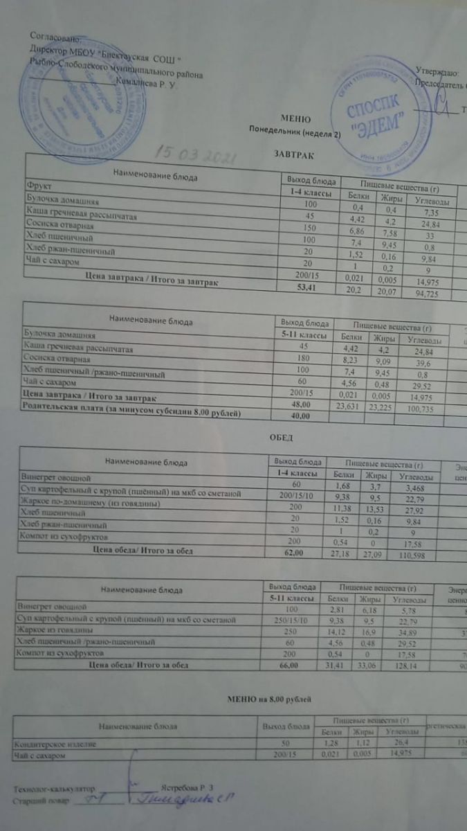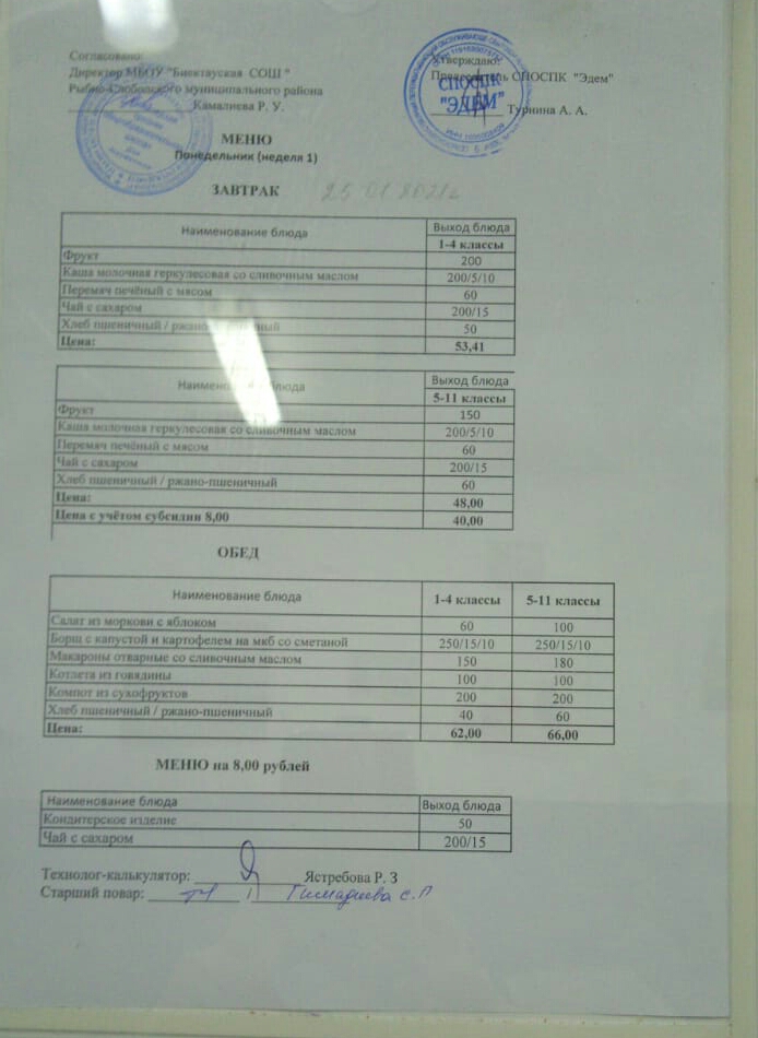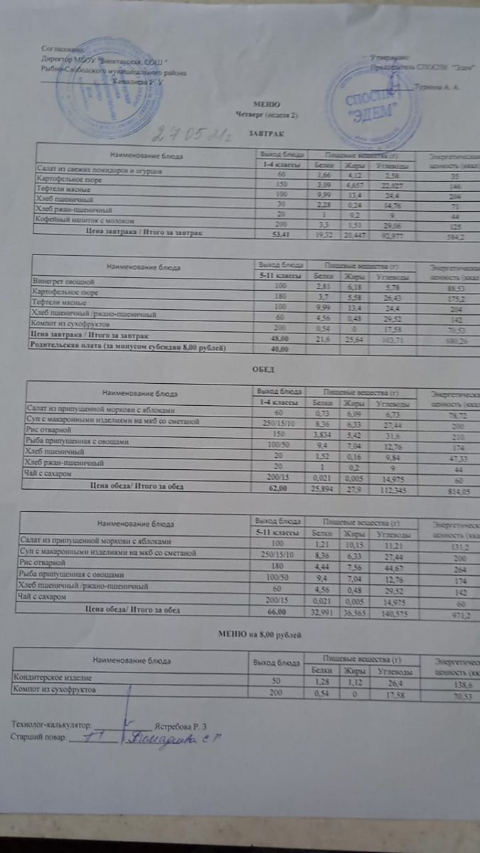 Примерное двухнедельное меню для 5-11 кл 2 полугодие