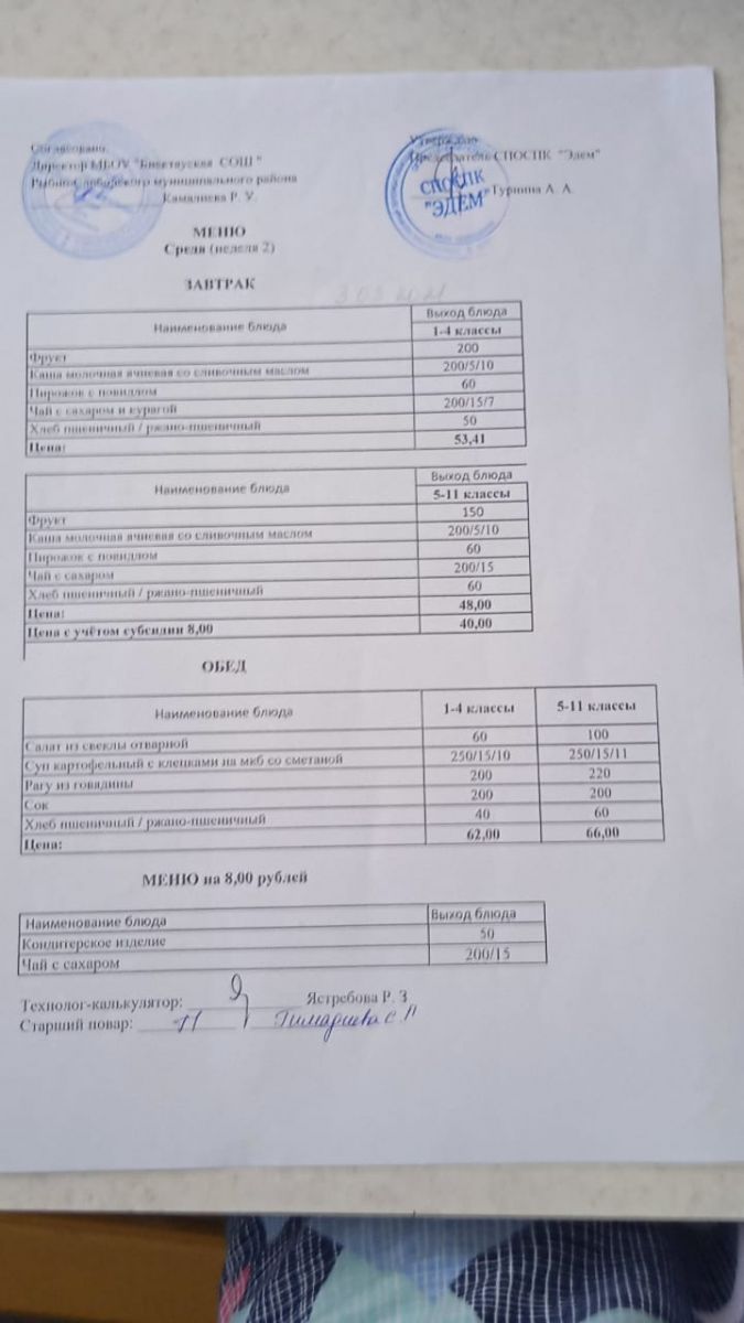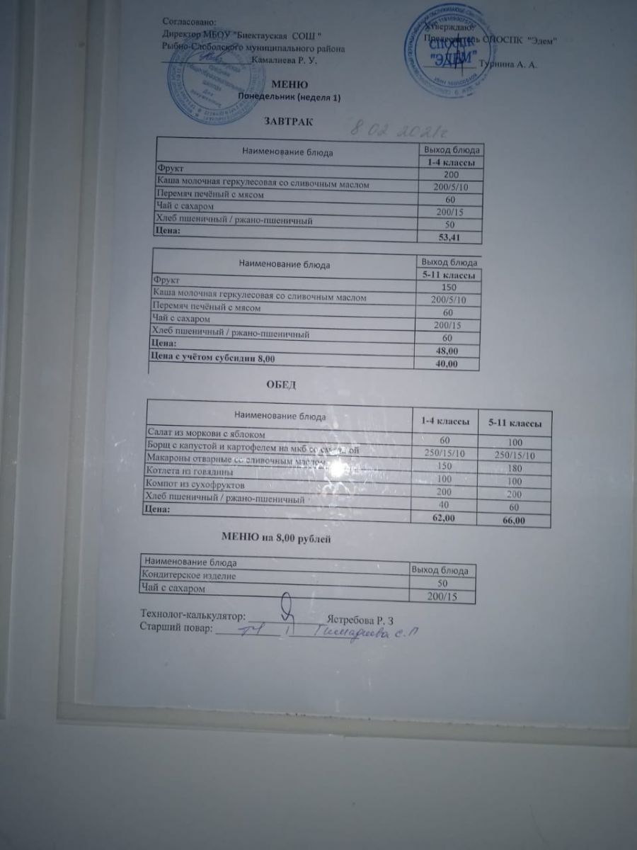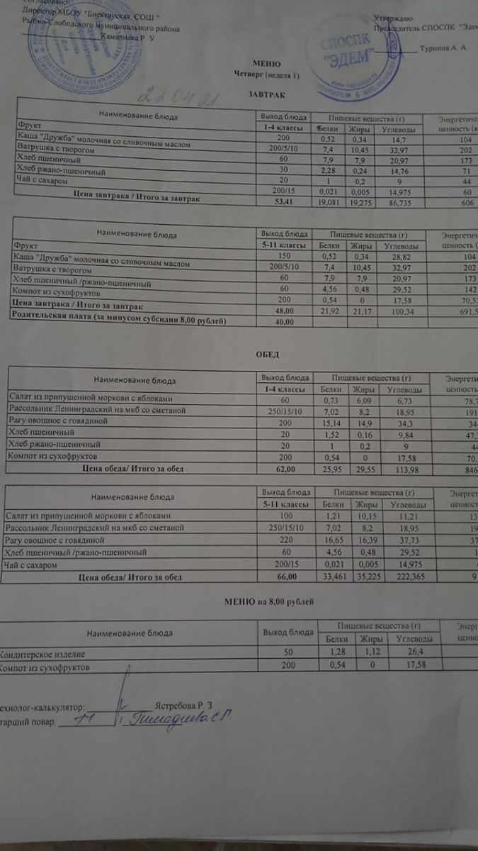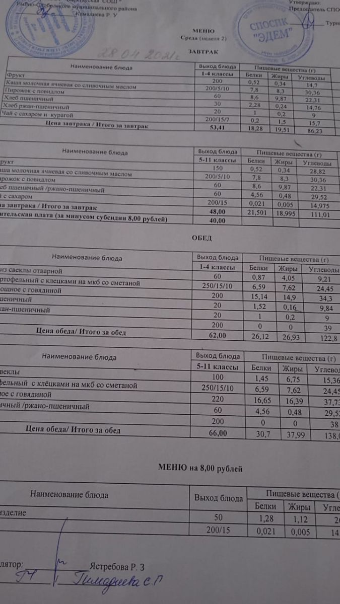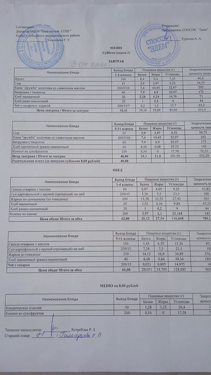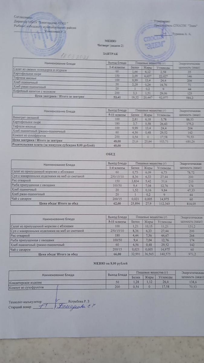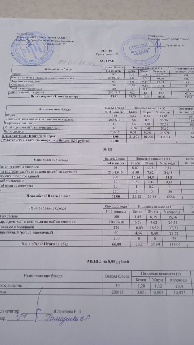 Примерное двухнедельное меню для 5-11 кл 2 полугодие