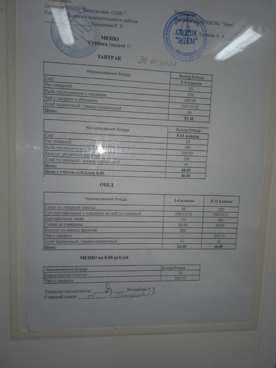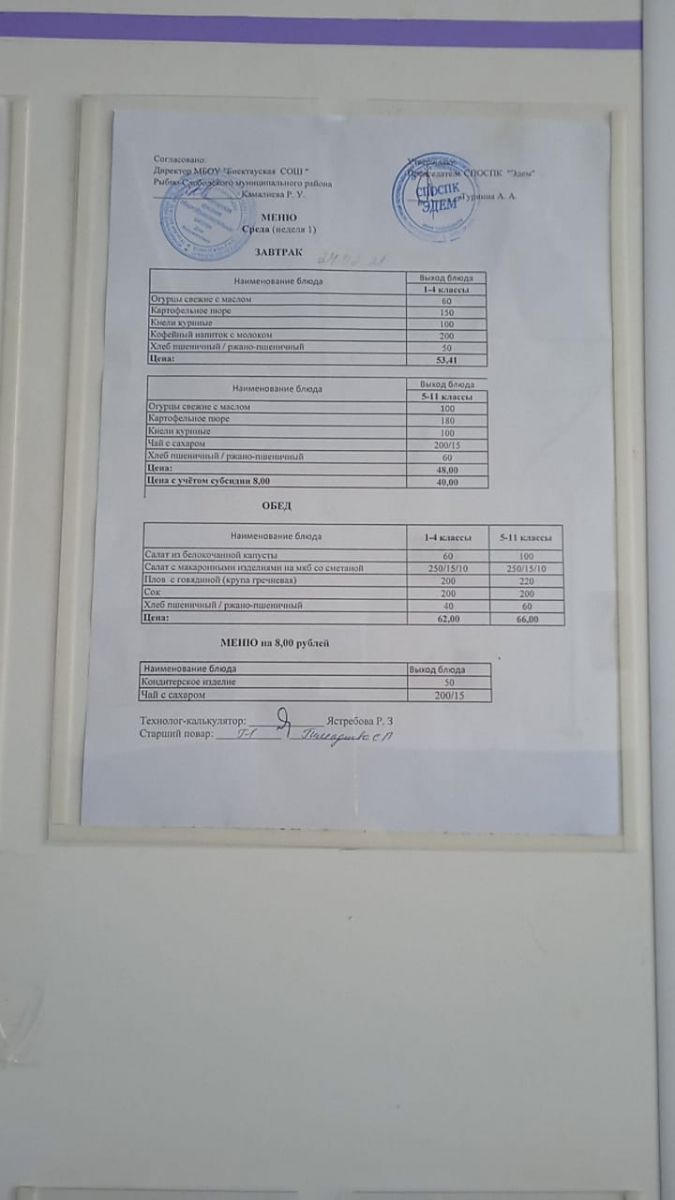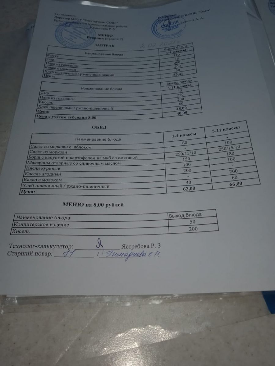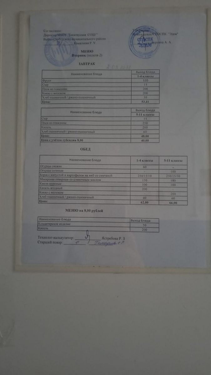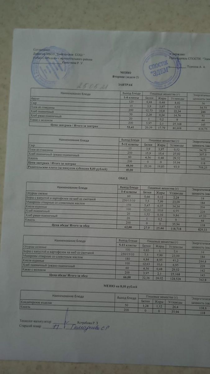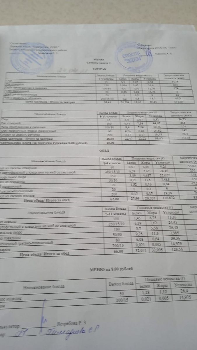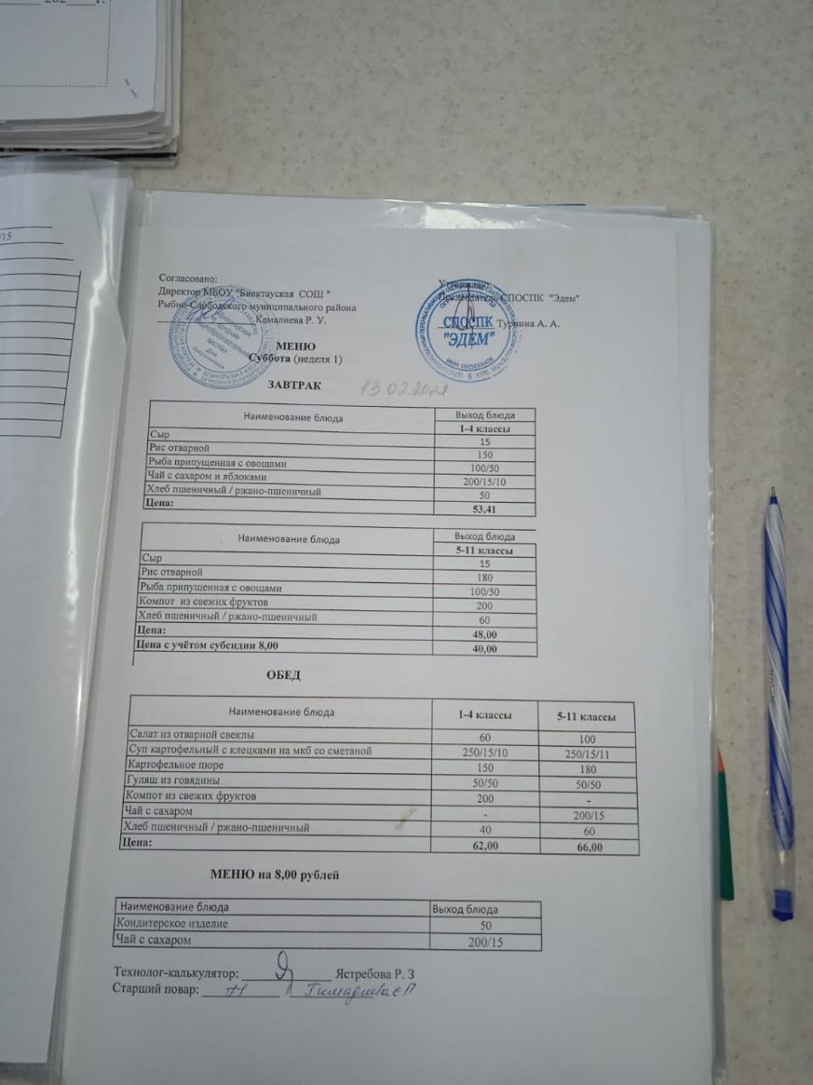 Примерное двухнедельное меню для 5-11 кл 2 полугодие