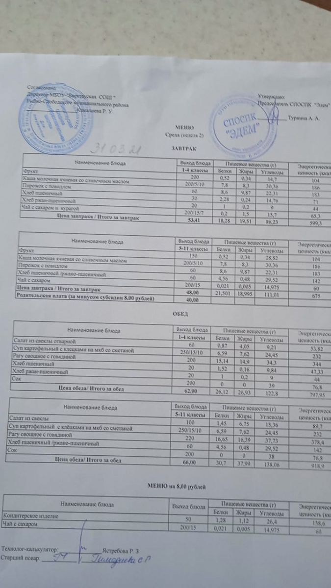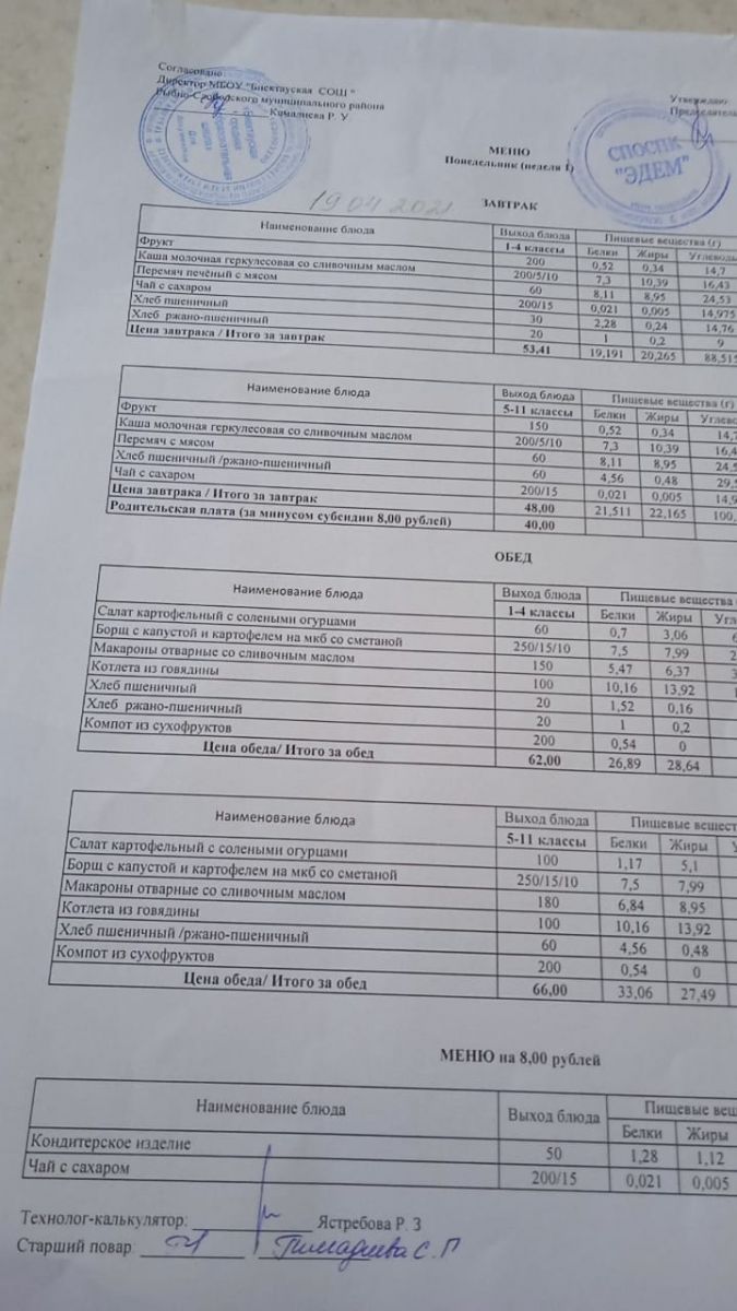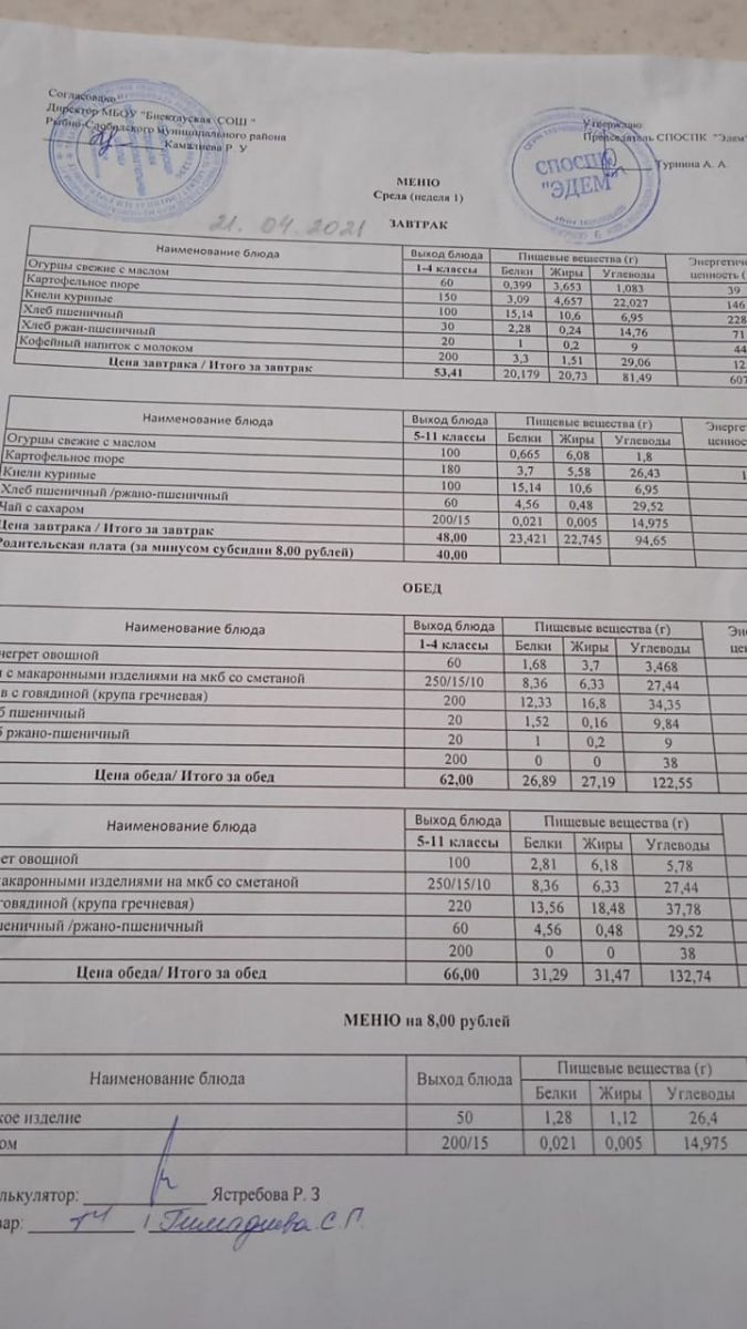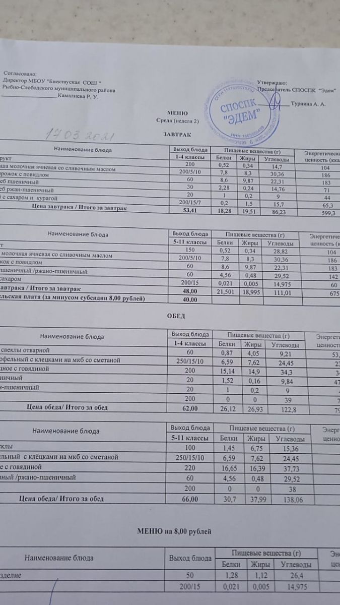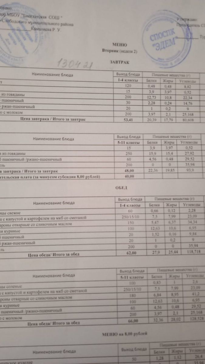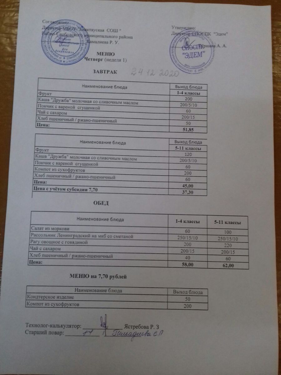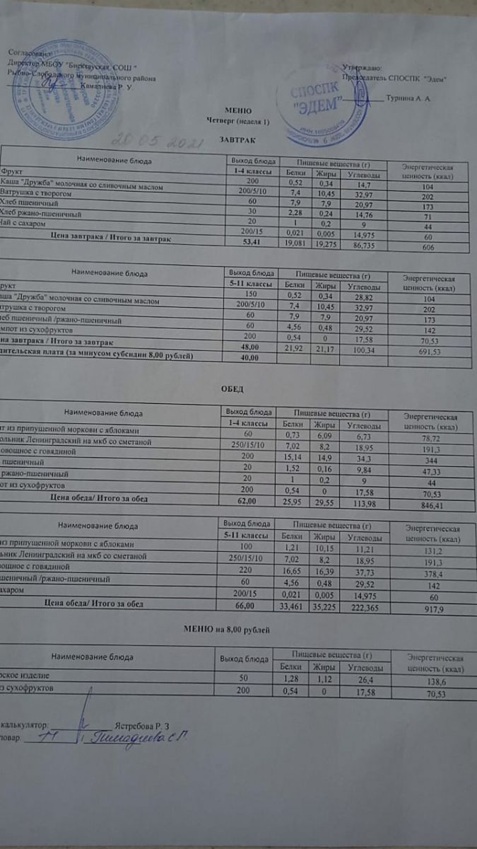 Примерное двухнедельное меню для 5-11 кл 2 полугодие