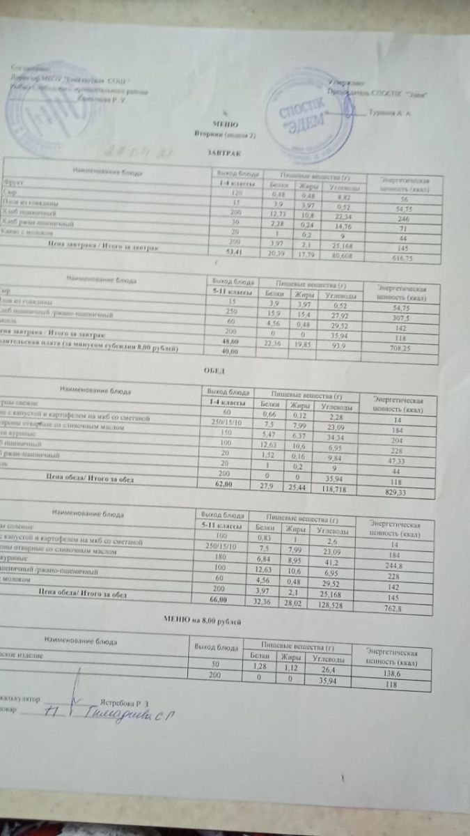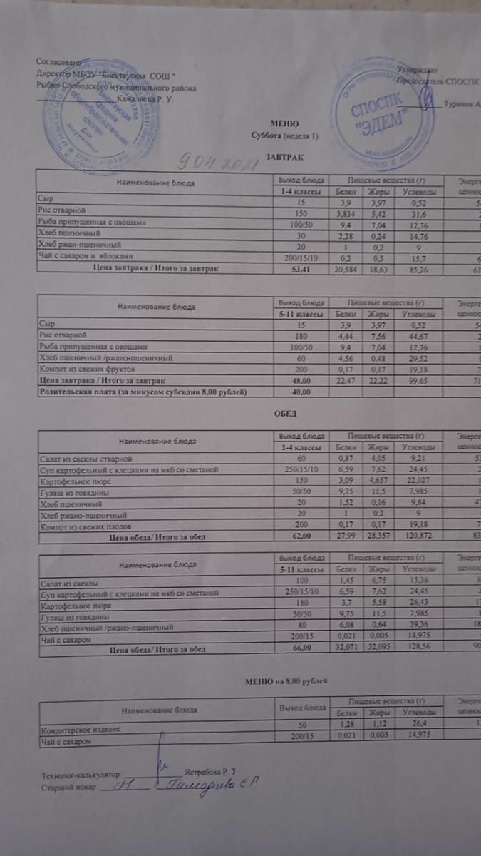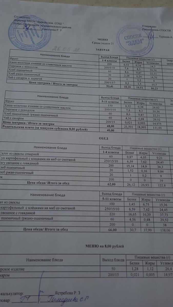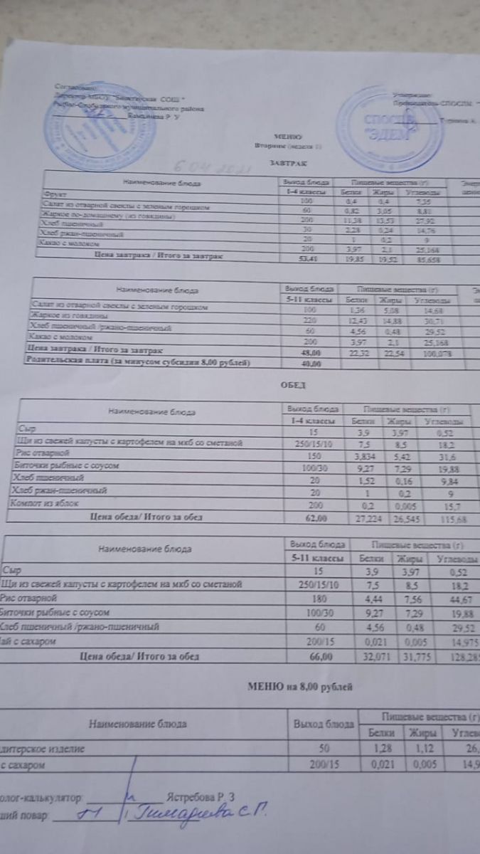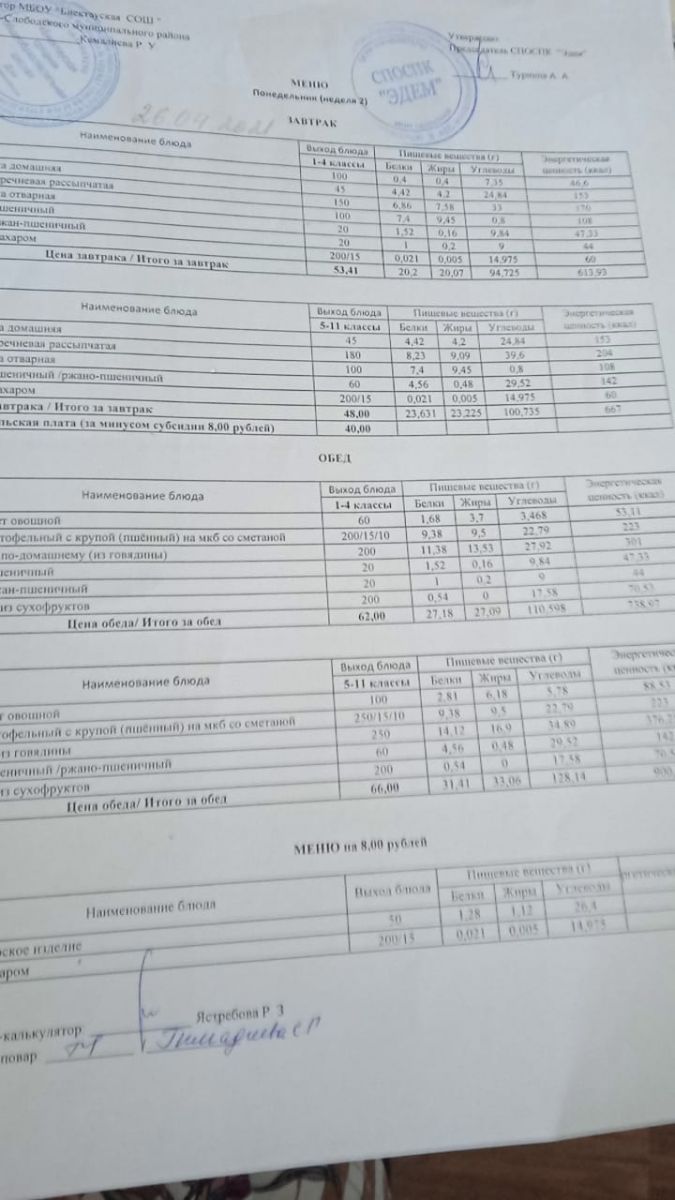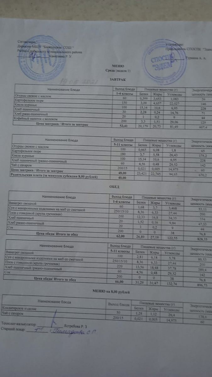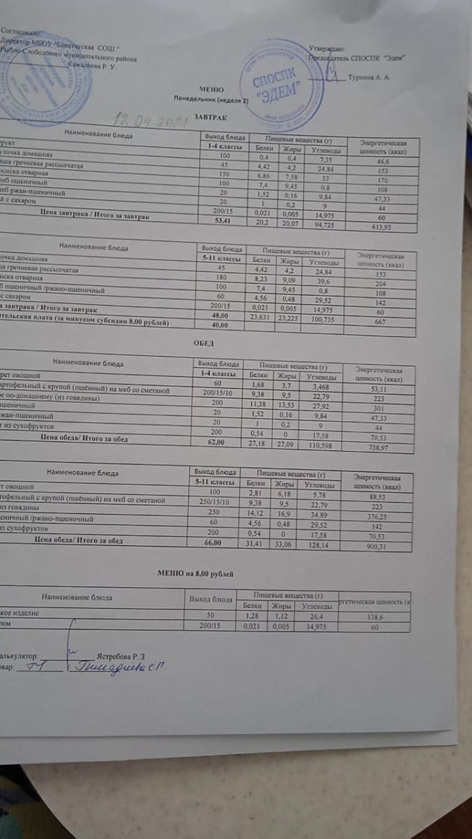 Примерное двухнедельное меню для 5-11 кл 2 полугодие