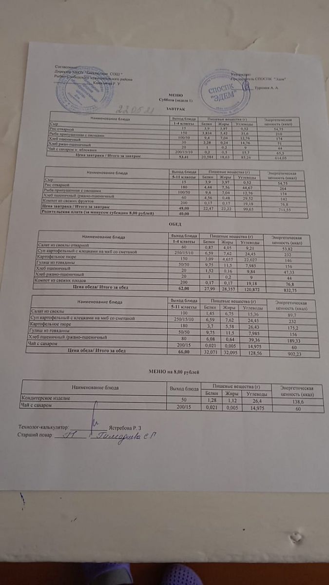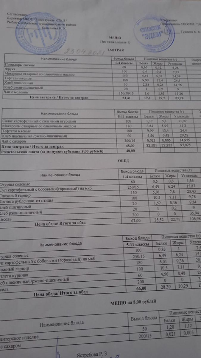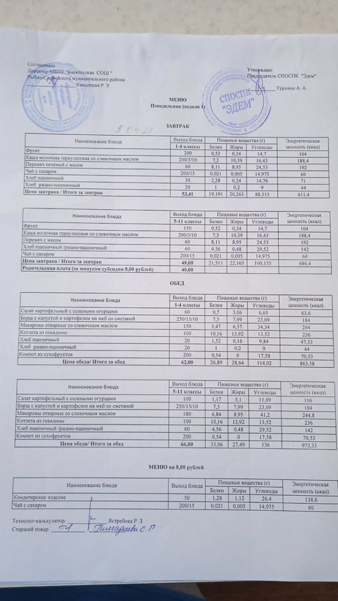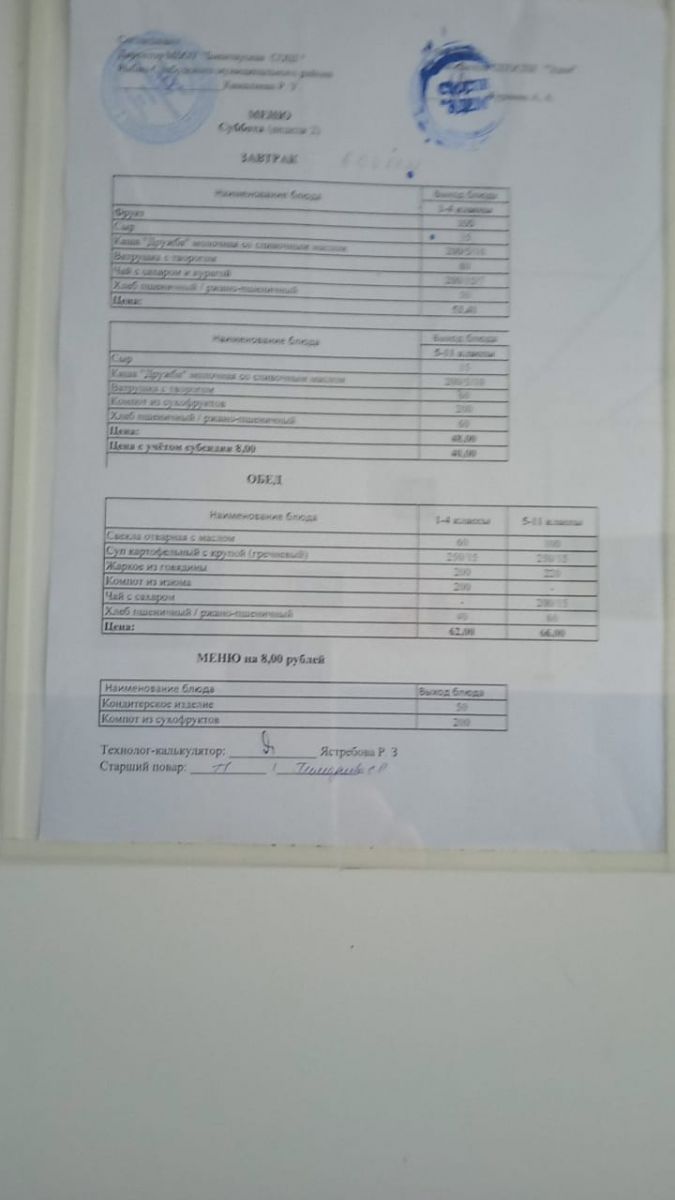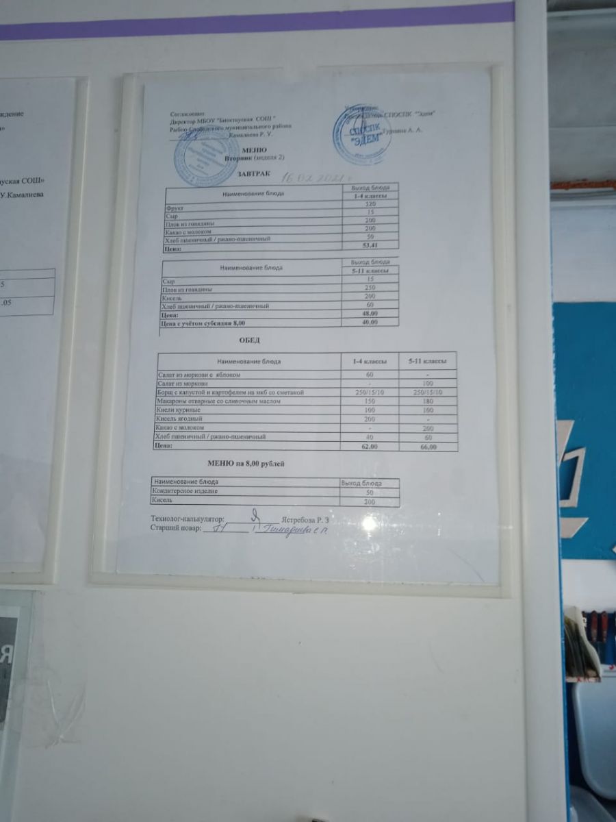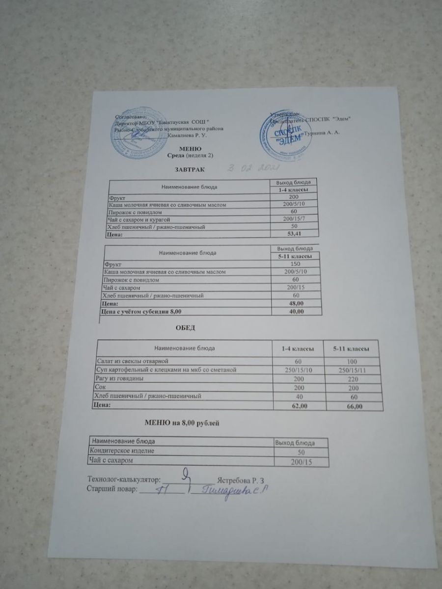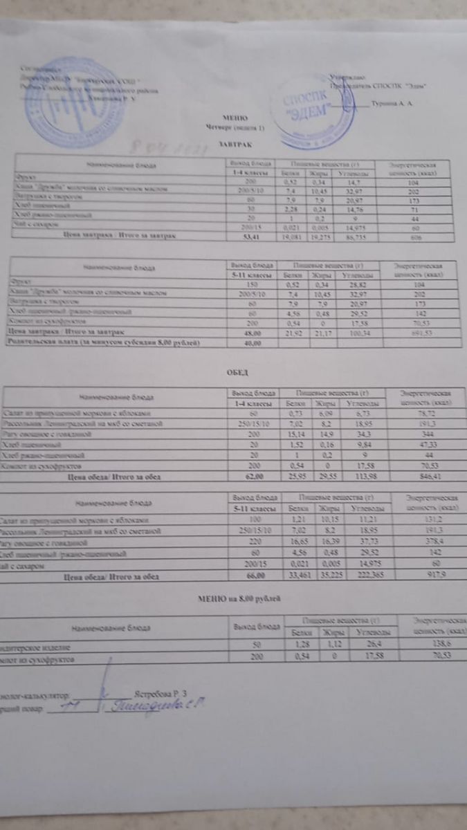 Примерное двухнедельное меню для 5-11 кл 2 полугодие