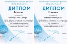 Поздравляем наших юных звёздочек - Гиннатуллину Самиру и Сибагатуллину Диану и их преподавателя Купцову Татьяну с отличными результатами на Республиканском конкурсе-фестивале «Патриоты России!».