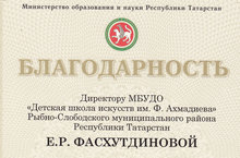 Муниципальное бюджетное учреждение дополнительного образования "Детская школа искусств им. Ф. Ахмадиева" Рыбно-Слободского муниципального района Республики Татарстан / "Ф. Әхмәдиев исемендәге Балалар сәнгать мәктәбе” өстәмә белем бирү муниципаль бюджет учреждениесе