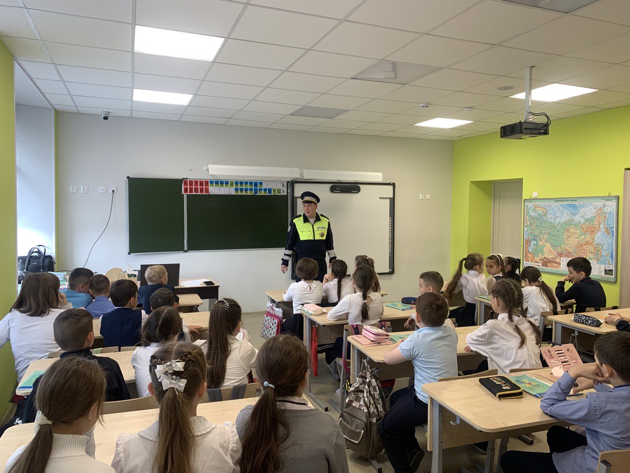 Бүген гимназиягә ЮПХ инспекторлары Мөхәммәдҗанов И.И. һәм Гафиуллин С.Р. килделәр. Алар укучылар белән юл йөрү кагыйдәләре, җәяүлеләр һәм пассажирлар роле турында сөйләштеләр..jpeg)