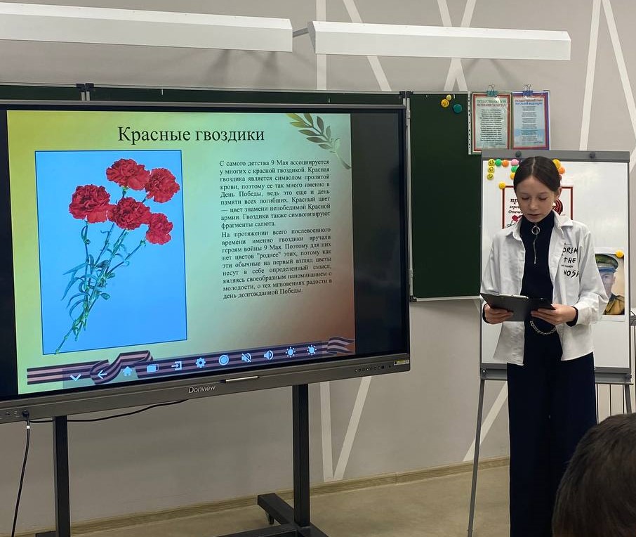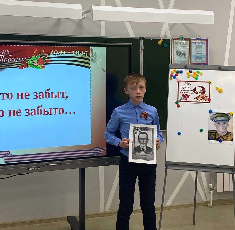 В преддверии празднования Дня Победы в 5 Б классе было проведено мероприятие "Никто не забыт, ничто не забыто". Ребята рассказывали о своих прадедушках, воевавших на фронтах Великой Отечественной войны. Чувством гордости за своих близких были наполнены истории, рассказанные Валиевым Ильясом, Мухаметзяновой Ралиной, Хузяхановой Дильбар. Группа учащихся подготовили сообщения о символах Победы: георгиевской ленточке, знамени Победы, вечном огне, гвоздиках, письмах с фронта и др. Ребята читали стихи и пели песню "И все о той весне". Завершилось мероприятие минутой молчания в честь погибших в Великой Отечественной войне. Мы помним, мы гордимся!