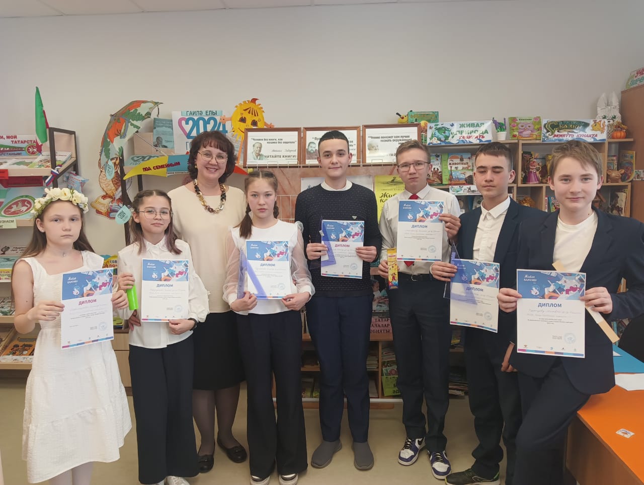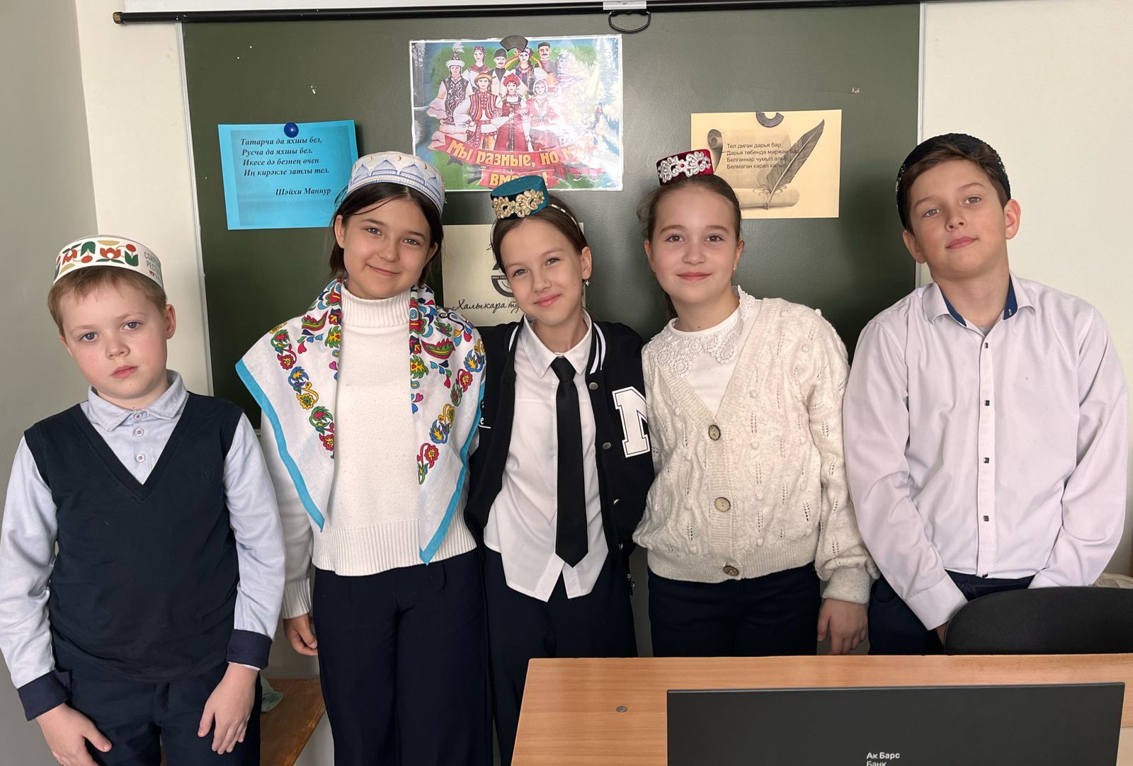 Башлангыч сыйныф дәресләрендә әкиятләр сәхнәләштерделәр, милли киемнәр рәсемен ясадылар, мәкаль-әйтемнәр буенча китапчыклар, лэтбуклар ясадылар, татарча мультфильмнар карадылар.
