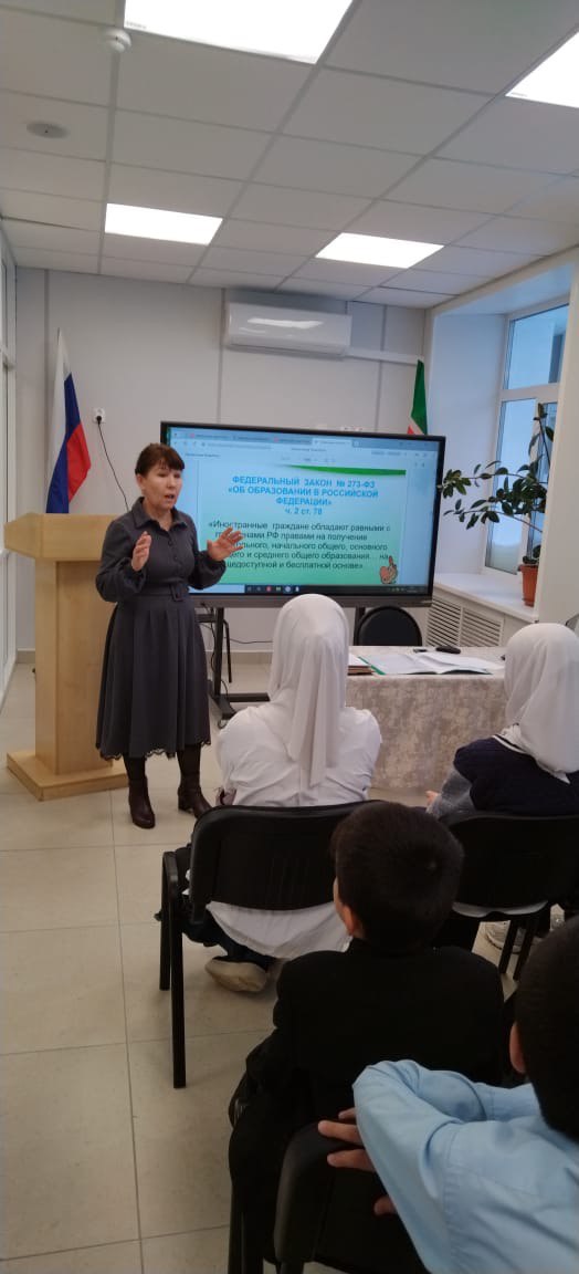 В гимназии продолжается работа по созданию атмосферы заботы, поддержки и помощи детям из семей мигрантов. 18 января специалисты педагог-психолог Мухамедзянова А.Р. и социальный педагог Сафина Р. К. провели занятие с детьми из семей мигрантов по преодолению трудностей и профилактике негативных явлений. Мероприятие было направлено на правовое просвещение школьников, формирование установок толерантного сознания и предупреждение проявлений национализма. Кроме того, проведена диагностика по выявлению личностных особенностей социальной адаптации в условиях образовательной организации.