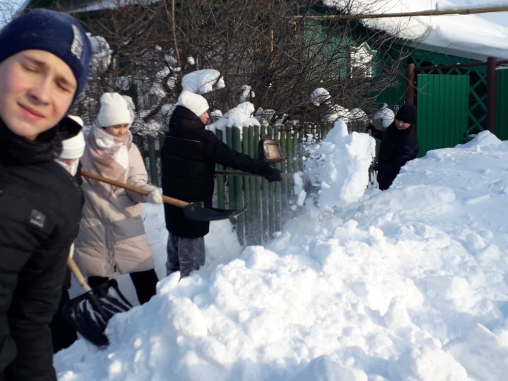 Ученики 7А класса, вооружившись лопатами, дружно убирали скопившийся во дворах снег, расчищали дорожки к сараям, погребам, а также пути к дому снаружи. В ответ современные тимуровцы получили слова благодарности от наших ветеранов.