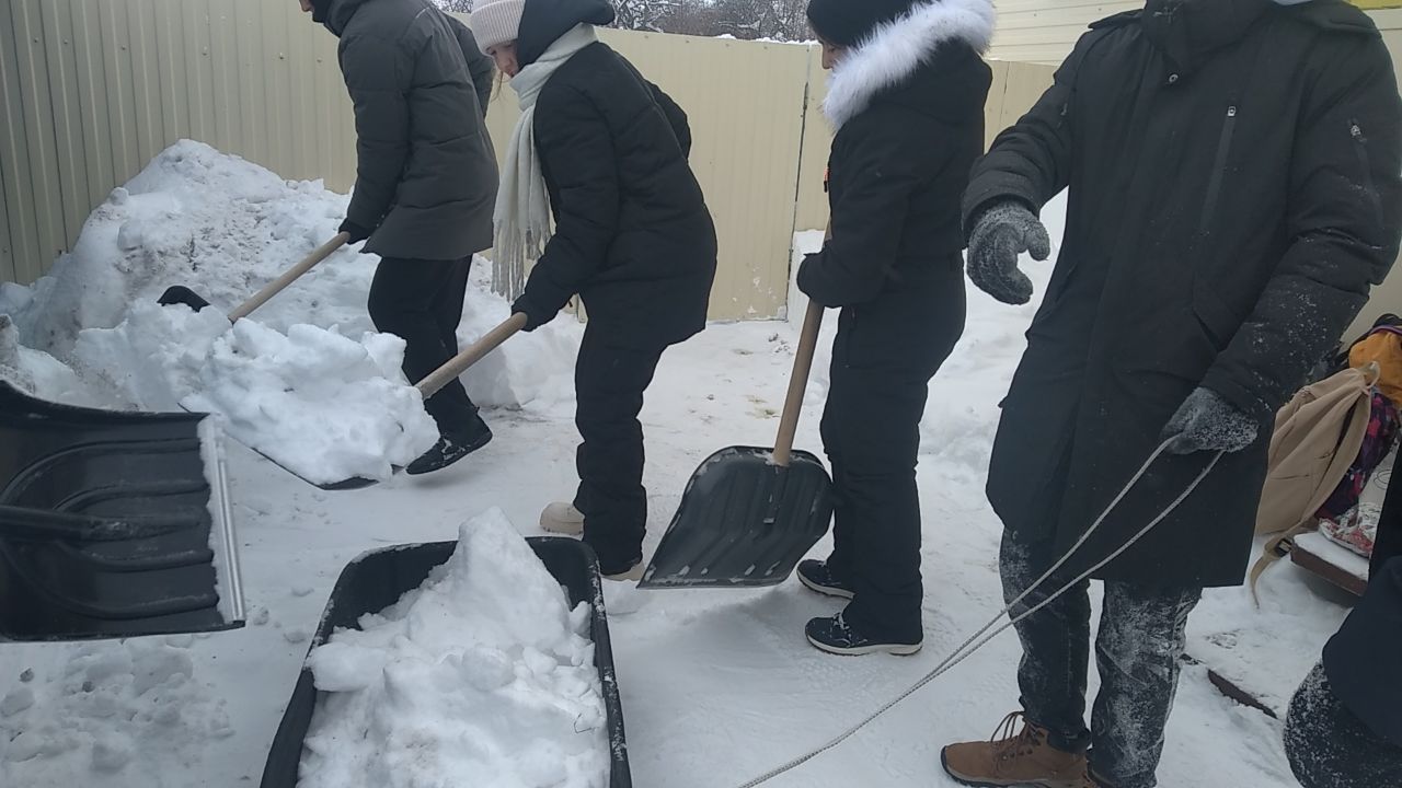 Ученики 10 класса вступили в неравный бой со снегом на территории дома пенсионера нашей гимназии, Репейковой Марии Павловны. Всю свою жизнь тетя Маша (так ее называли ребята) встречала учеников гимназии. Она отдавала свою любовь детям, и теперь очередь за нами.