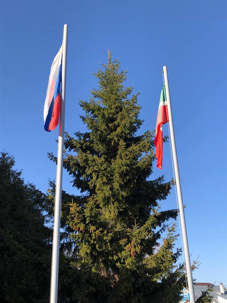 Первый понедельник четвертой учебной четверти прошел в гимназии как обычно. В 8 часов утра состоялась торжественная церемония поднятия Государственных флагов Российской Федерации и Республики Татарстан и исполнениеи гимнов. Участниками церемонии стали учащиеся 5Б, 9А,9Б и 11 классов. Право поднять Государственный флаг Российской Федерации представлено капитану волейбольной команды гимназии, занявшей 2 место в зональном этапе соревнований Школьной волейбольной лиги, Набиуллину Рушану, флаг Республики Татарстан — капитану команды девушек, юнармейцу, Егоровой Виолетте.