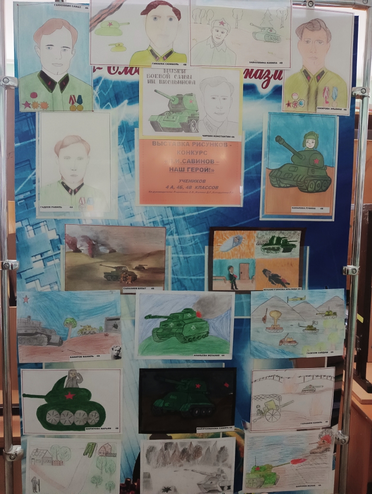 П.И.Савинов исемендәге мәктәп музеенда Җүңүнең 77- еллыгына багышланган рәсемнәр конкурсының җиңүчеләрен котладылар. Конкурста 4 нче сыйныфлар катнаштылар.