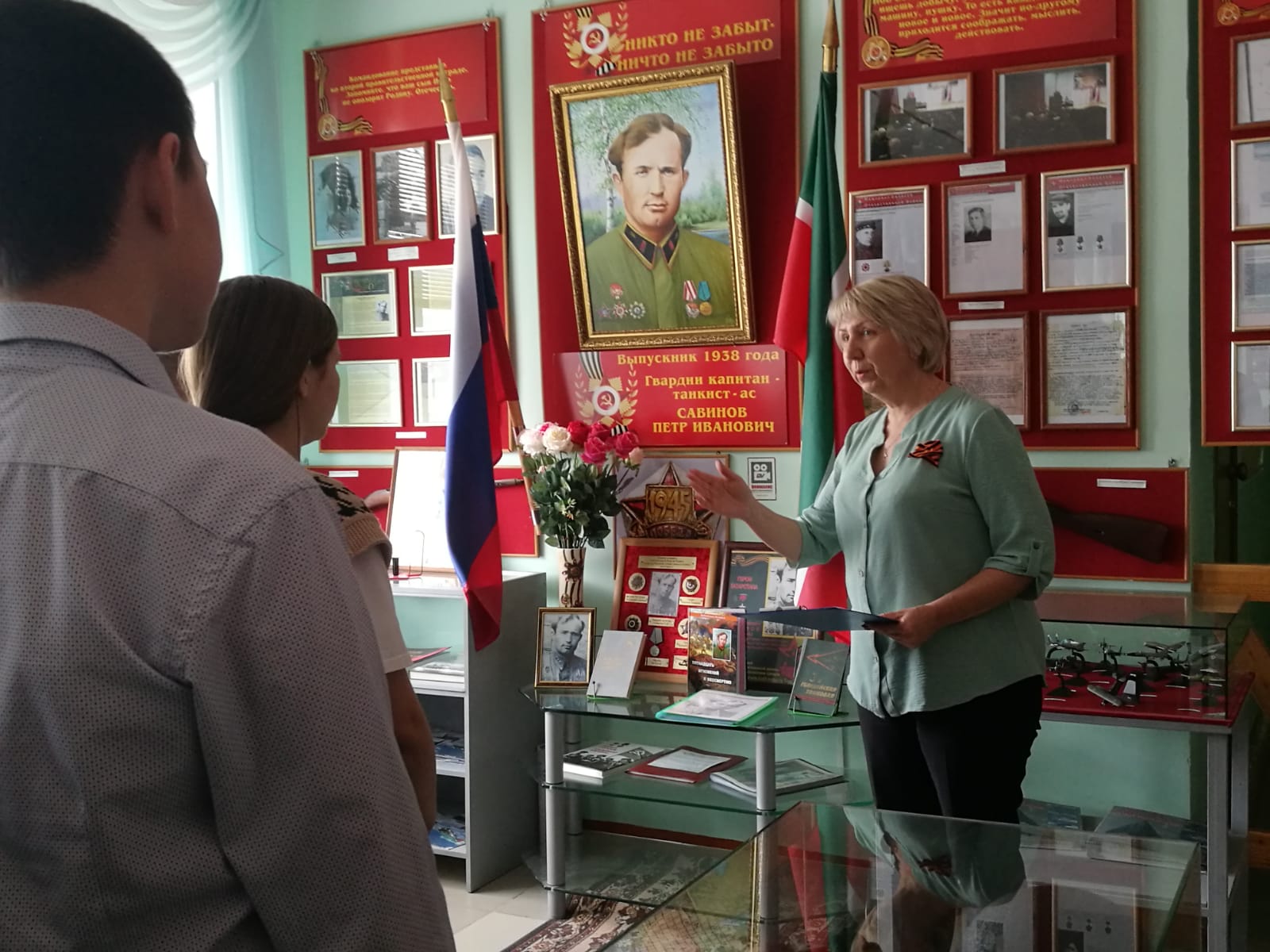 Бөек Җиңүнең 77 еллыгын бәйрәм итү уңаеннан Савинов П.И. исемендәге мәктәп музеена экскурсияләр оештырылды (җитәкчесе Чеботарева Н.Н.) Укучылар Наталья Николаевна чыгышын бик кызыксынып тыңладылар, сораулар бирделәр. Геройлар турында хәтер мәңгелек!