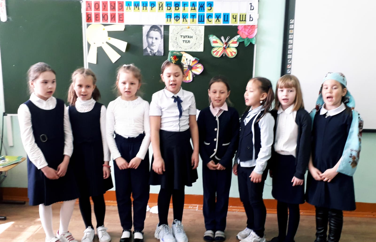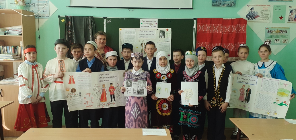 4 В сыйныфы «Россия халыкларының милли киемнәре» темасы буенча проектлар якладылар. Беренче группа — «Татар милли киемнәре», икенче — «Рус милли киемнәре», өченче- «Таҗик милли киемнәре» турында чыгыш ясадылар. Укучылар үзләренең проект темасына туры китереп милли киемнәр кигәннәр иде. Проектлар кызыклы һәм матур килеп чыкты. Сыйныф җитәкчесе Капарулина Г.Н. чыгышларны өстәмә мәгълүмат белән тулыландырып торды.
