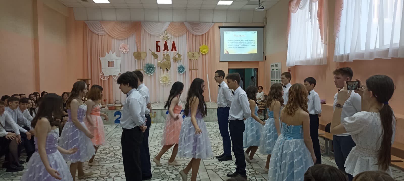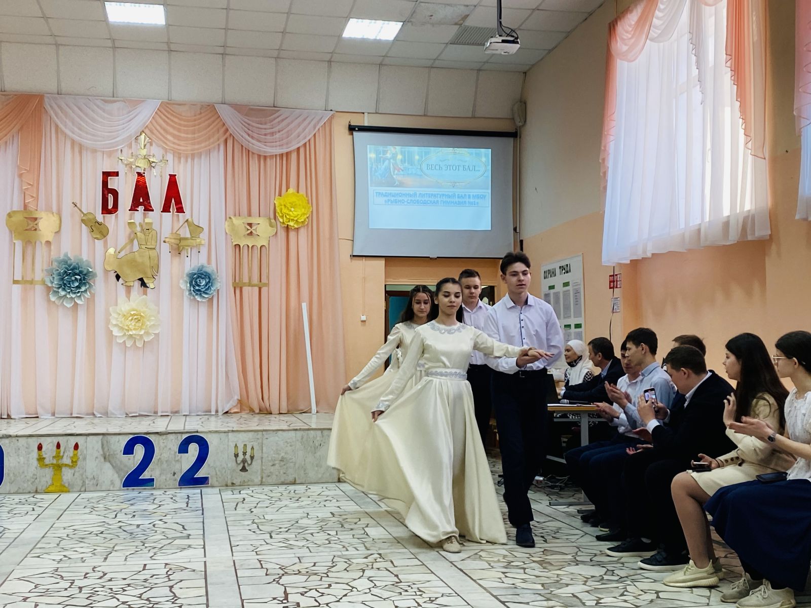 По уже сложившейся традиции 17 марта в гимназии прошел бал. Очарование празднику придавали и наряды милых девушек, и строгие смокинги немного смущавшихся юношей, и декорации - вся обстановка способствовала созданию хорошего настроения. Ведущие, ученица 9 Б класса Сафина Ильдина, выпускники 11 А класса Гиниятов Марат и Сахаров Артур, поведали зрителям историю проведения балов, ученики 10 класса Ананьева Анна и Нигматзянов Шамиль продемонстрировали собравшимся азы полонеза. Приятно удивил зрителей своим выступлением ученик 9 класса Сибгатуллин Фаиль, покорив всех игрой на гитаре.Блистали нарядами, кружились в вальсе, покоряли и вдохновляли сердца присутствующих на весеннем балу юные танцоры. В зале царила атмосфера XIX века. На вечере все обращались друг к другу не иначе как «дамы» и «господа». И ни один танец не был прерван звучанием мобильного телефона. Все IT-технологии XXI века гости оставили за пределами зала. Только традиции золотого века соблюдались в этот вечер.Бал состоялся, а значит, он стал очевидным свидетельством творческого содружества педагогического и ученического коллективов гимназии.
