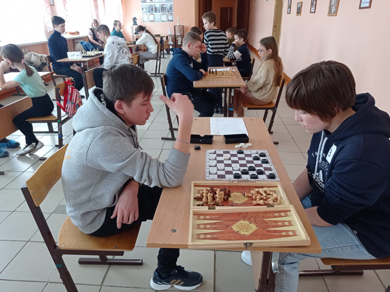 Каникулның беренче көнендә гимназиядә шахмат-шашка турниры үткәрелде. Бу турнирда 25 уенчы катнашты. Иң кечкенәсе 3 нче сыйныф, ә иң зурысы 11 нче сыйныф укучысы иде. Шахмат барсын да берләштерде. Җиңүчеләр грамота һәм истәлекле бүләк белән бүләкләнделәр.