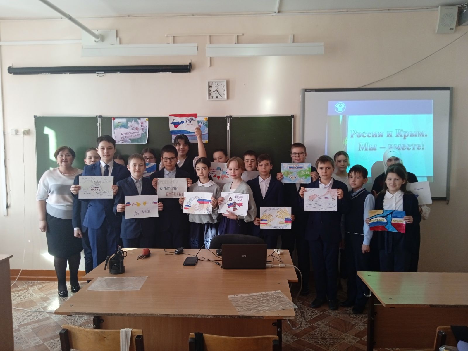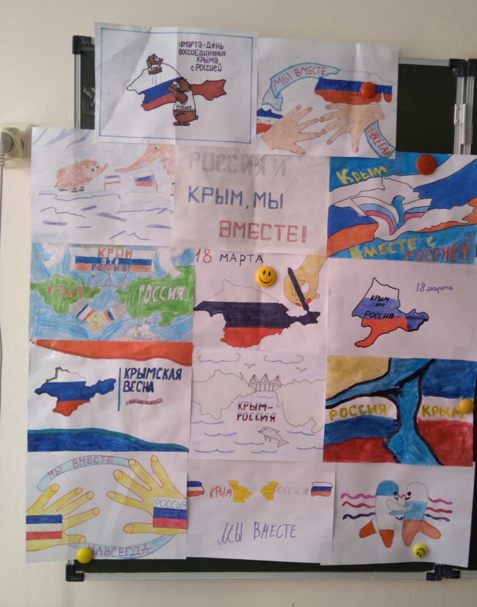 18 марта 2022 года в 1-11 классах нашей школы прошли классные часы «Крым и Россия – общая судьба», «Крым – путь домой», посвящённые годовщине воссоединения России и Крыма. Учащиеся узнали о событиях, предшествовавших воссоединению Крыма и России. Вместе с учащимися вернулись на несколько лет назад, вспомнив и о предыдущем референдуме, когда крымчане уже делали попытку остаться с Россией. Конечно же, не забыли и о более давней истории полуострова — Екатерина II, Крымская война, Советский Союз, Великая Отечественная война. Была затронута и тема «крымской нации» — пожалуй, именно так можно назвать всех тех, кто называет себя крымчанами, независимо от национальности, вероисповедания и взглядов, ведь Крым — это регион, где на протяжении веков всё смешивалось и роднилось, умиротворяясь удивительной природой и климатом полуострова.
