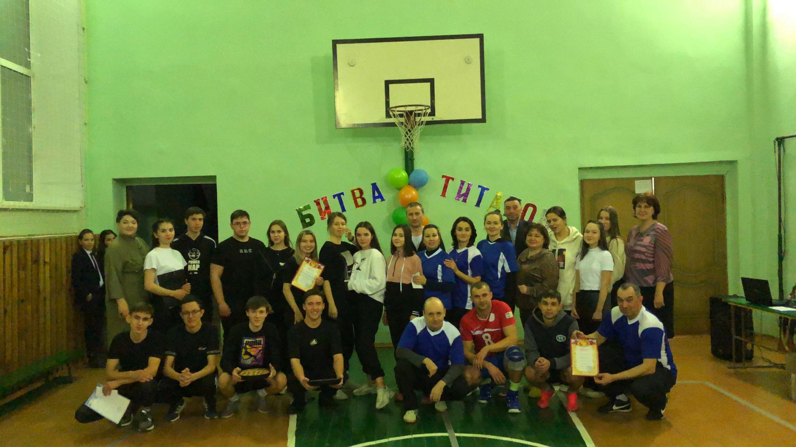 11 марта в спортивном зале гимназии состоялся праздник «Битва титанов», традиционно объединяющий команды учителей и одиннадцатиклассников. На старт вышли 2 команды: «Позитив» и «Оба-на». Программа соревнований была довольно насыщенной. Все этапы этого увлекательного мероприятия проходили в напряженной борьбе. Спортивный задор и желание добиться победы захватывали соревнующихся настолько, что они не замечали происходящего вокруг. Команды старались изо всех сил прийти к финишу первыми. Быстрота и ловкость учащихся, мудрость и осторожность педагогов привели команды к результату: побежденных и проигравших не было. Разница в очках, конечно, была! Но разве это важно в спорте?! И участники, и болельщики получили огромный заряд энергии.