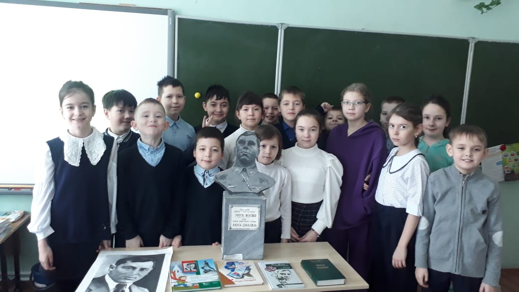 15февраля в гимназии уроки родного языка посвятили герою-поэту Мусе Джалилю. На уроках говорили о его творчестве , читали стихи, в начальных классах рисовали рисунки.