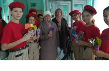 Накануне с самого утра наши Юнармейцы радовали учителей приятными пожеланиями и поздравлениями, а также дарили небольшие подарки -цветы, сделанные своими руками на уроках технологии.