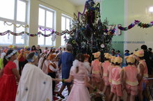 Для детей подготовили и провели веселые и задорные конкурсы. Дети стали клоунами,снеговиками.Собирали снежки, отгадывали загадки, ходили на необычную рыбалку, где ловили удочкой елочные игрушки и наряжали елку. Родители принимали активное участие и с азартом помогали своим деткам.