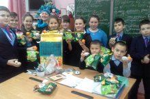 “Лидерлык нигезләре” түгәрәгенә йөрүче укучылар Кыш бабайдан посылка алдылар һәм тәмле күчтәнәчләр белән сыйландылар.Балалар Кыш бабайга исәнлек-саулык, бәхет теләп икенче елга да килүен сорадылар.
