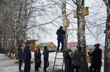 Канатлы дусларыбыз килүенә матур итеп ясалган кош ояларын элеп тә куйдык.Күпмедер вакыттан соң анда сыерчыклар бөтерелгәне күренде. Рәхим итегез, дускайлар!