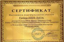 Учаящаяся 4б класса Гатауллина Ляйля приняла участие в Международной дистанционной викторине «Почемучки» и получила сертификат за участие. -