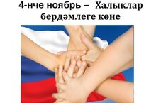 Бу көн – илебез тарихына хөрмәт белдерү һәм аның данлыклы традицияләрен дәвам иттерүнең бер күркәм билгесе. Бу бәйрәмнең тарихы ерак гасырларга барып тоташа. Ул тынычлык, иминлек, бәйсезлек өчен бердәмлек символын чагылдыра. Әйе, уртак көч булып туплансак, авыр чакта бер-беребезгә ярдәм кулы сузсак , төрле дин һәм милләт халкына, аларның гореф-гадәтләренә хөрмәт белән карасак, без - көчле халык. Иң мөһиме - кыйблабыз ачык, туры булсын. Аңлашып яшәсәк кенә тормышыбыз рухи һәм икътисади яктан алга китәр.4 ноября-День народного единства. День народного единства имеет глубокий духовный смысл. Он учит нас быть едиными, уважать подвиги наших предков. Этот день-знак уважения к истории нашей страны и продолжения ее славных традиций. История этого праздника уходит корнями в далекие века. Он символизирует мир, благополучие, единство во имя независимости. Да, если мы объединимся общими усилиями, протянем друг другу руку помощи в трудную минуту , будем относиться с уважением к народам разных вероисповеданий и национальностей, их традициям, то мы-сильный народ. Только если мы будем жить осознанно, наша жизнь будет развиваться духовно и экономически.