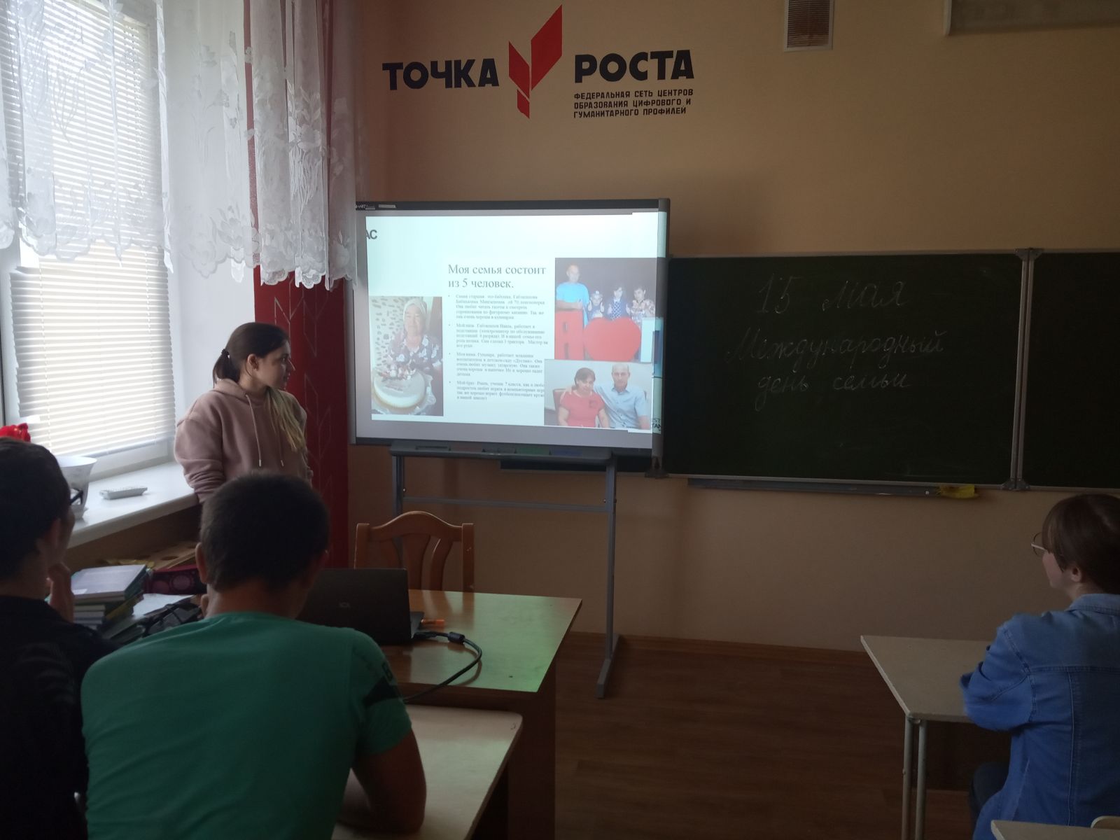 Бу көнне сыйныфларда гаилә көненә багышланган сыйныф сәгатьләре узды, ә 10 сыйныф укучылары “Минем гаиләм“ дигән темага проект якладылар.