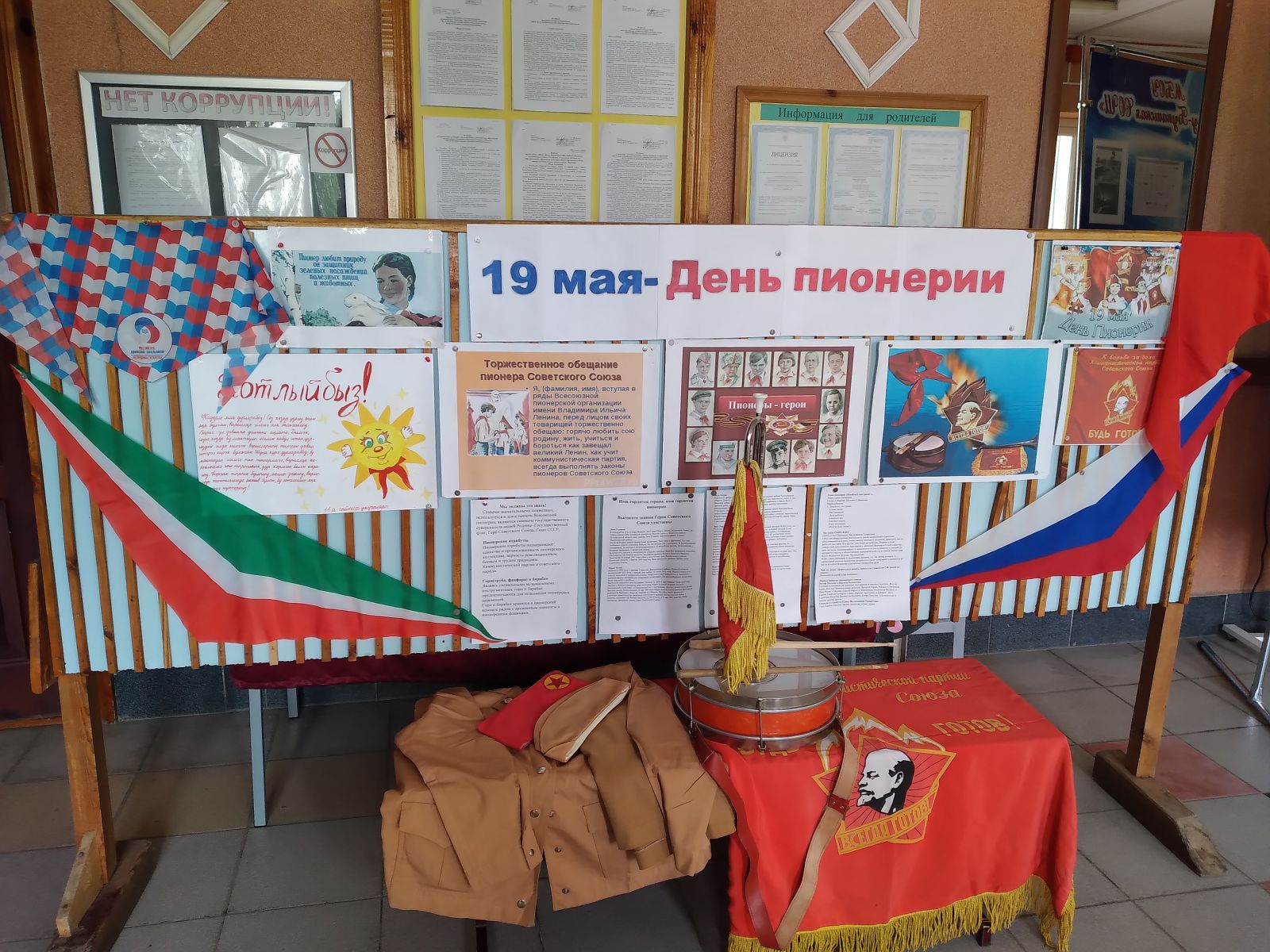 Опубликовано: 19.05.2021Пионер оешмасының туган көне уңаеннан мәктәбебездә стенд оештырылды.