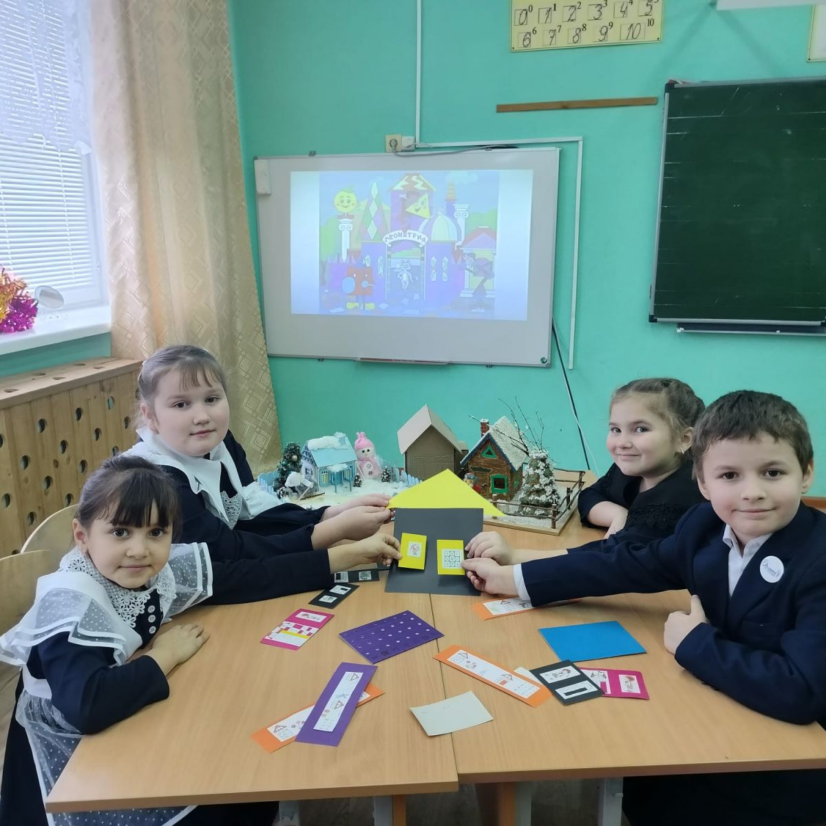 Учащиеся 1-2 классов создавали модели «уют в семье» из геометрических фигур, изображая домики.