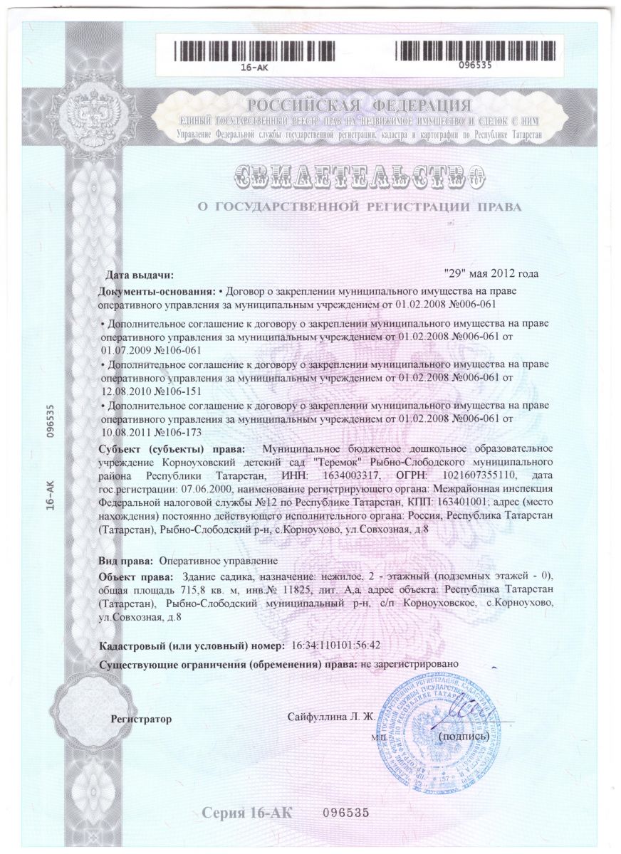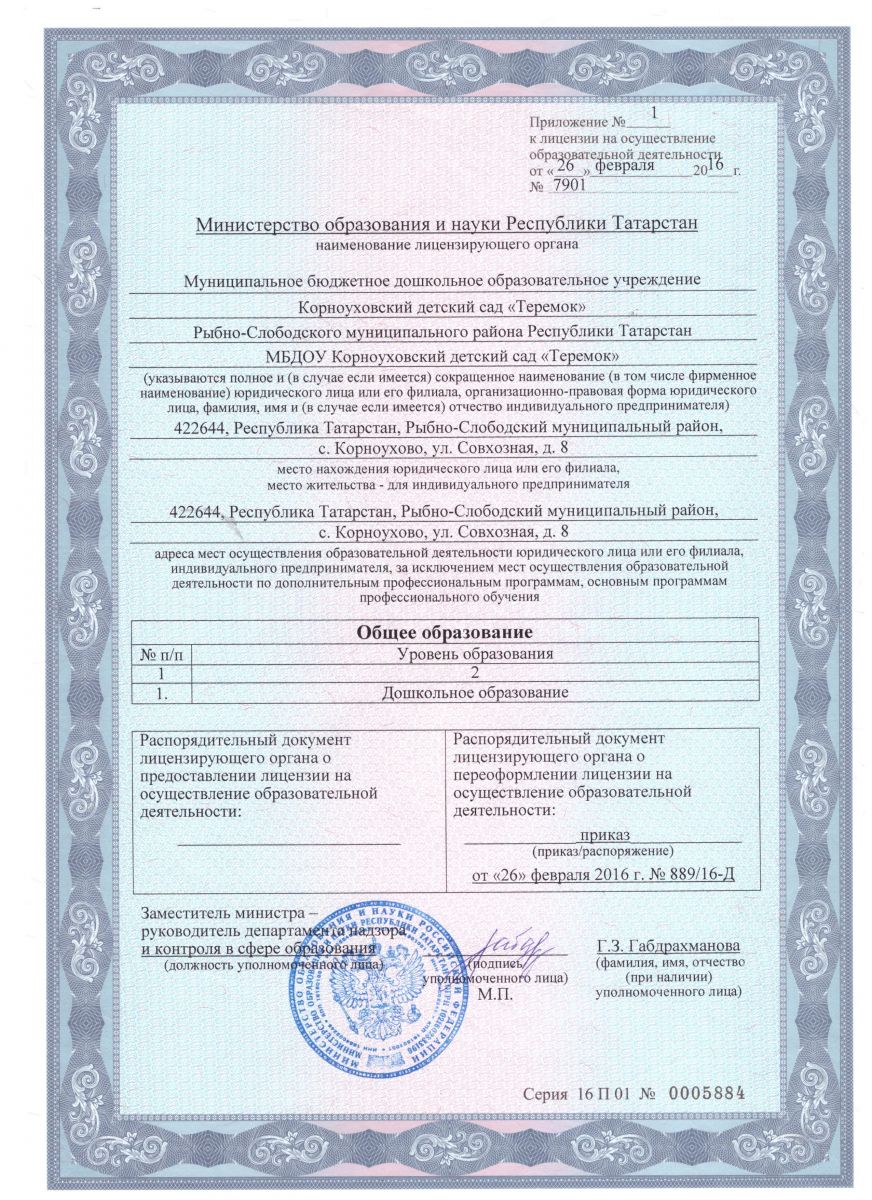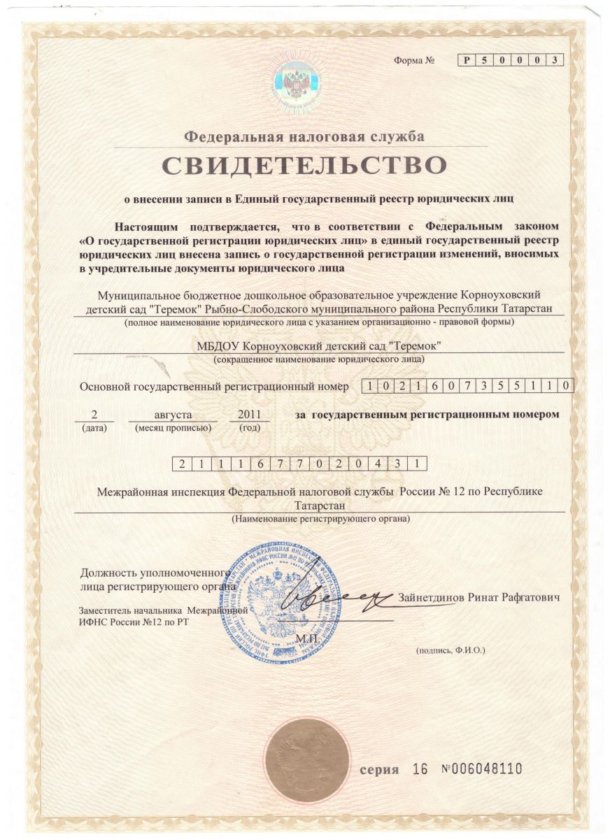 | Короткое название: | МБДОУ Корноуховский детский сад "Теремок"/ МБДОУ Корноухово "Теремкәй" балалар бакчасы МБМБУ |