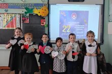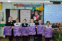 Для учащихся 1-го класса были вручены именные значки, мешки и галстук "Орлята России".