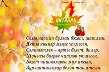 Бүген бишенче октябрь, Укытучылар көне! Әлеге күркәм бәйрәм көнендә йөрәктән чыккан иң изге теләкләрне, иң җылы хисләрне кабул итегез! Һөнәрегезгә һәрчак тугры булуыгыз, күңел сафлыгыгыз һәм тырышлыгыгыз өчен зур рәхмәт сезгә! Барыгызга да исәнлек-саулык, күңел күтәренкелеге, зур уңышлар, бетмәс-төкәнмәс энергия, эшегездә яңа үрләр яулавыгызны телим!