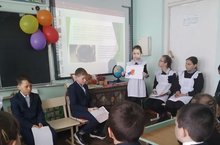 12 апель - Космонавтика көненә 60 ел уңаеннан барлык сыйныфларда да тэрбия сәгатьлэре уткэрелде. Гагариннын тормыш юлы турында презентацияләр курсэтелде. -