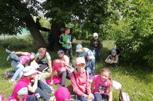 Сәламәтлек минутларын фельдшер Сафина Ләйлә үткәрде. Ул җәй көне урманнарда йөргәндә бөҗәкләр тешләсә, талпан кадалса, елан чакса беренче ярдәм күрсәтү турында сөйләде, кайберләрен эшләп карадык. Соңыннан “Якташ рәссамнар” дигән презентация карадык, фикер алыштык. Балалар арасында “Каникулда” дигән исем астында рәсем ясау конкурсы оештырдык. Беренчелекне Гатиятуллина Язгөлем алды. Төшке аштан соң көнебез саф һавада дәвам итте. “Байрак алыш”, “Бакалар, әтәчләр сугышы” уеннарын яратып уйнадык. Көнебез күңелле узды.
