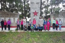 сугышта үлеп калган авылдашларыбыз истәлегенә куелган һәйкәлгә юл алдык. Укучылар үзләренең нәсел шәҗәрәсен кабаттан күзаллап һәйкәлдә язылган фамиияләрне укыдылар, нәсел җепләрен тоташтыручы исемнәрне эзләп таптылар, хәтерләрен яңарттылар. Эйе, үтткәнне өйрәнми торып киләчәкне төзеп булмый шул. Сугышта һәлак булучыларны бер минут тынлык белән искә алдык.