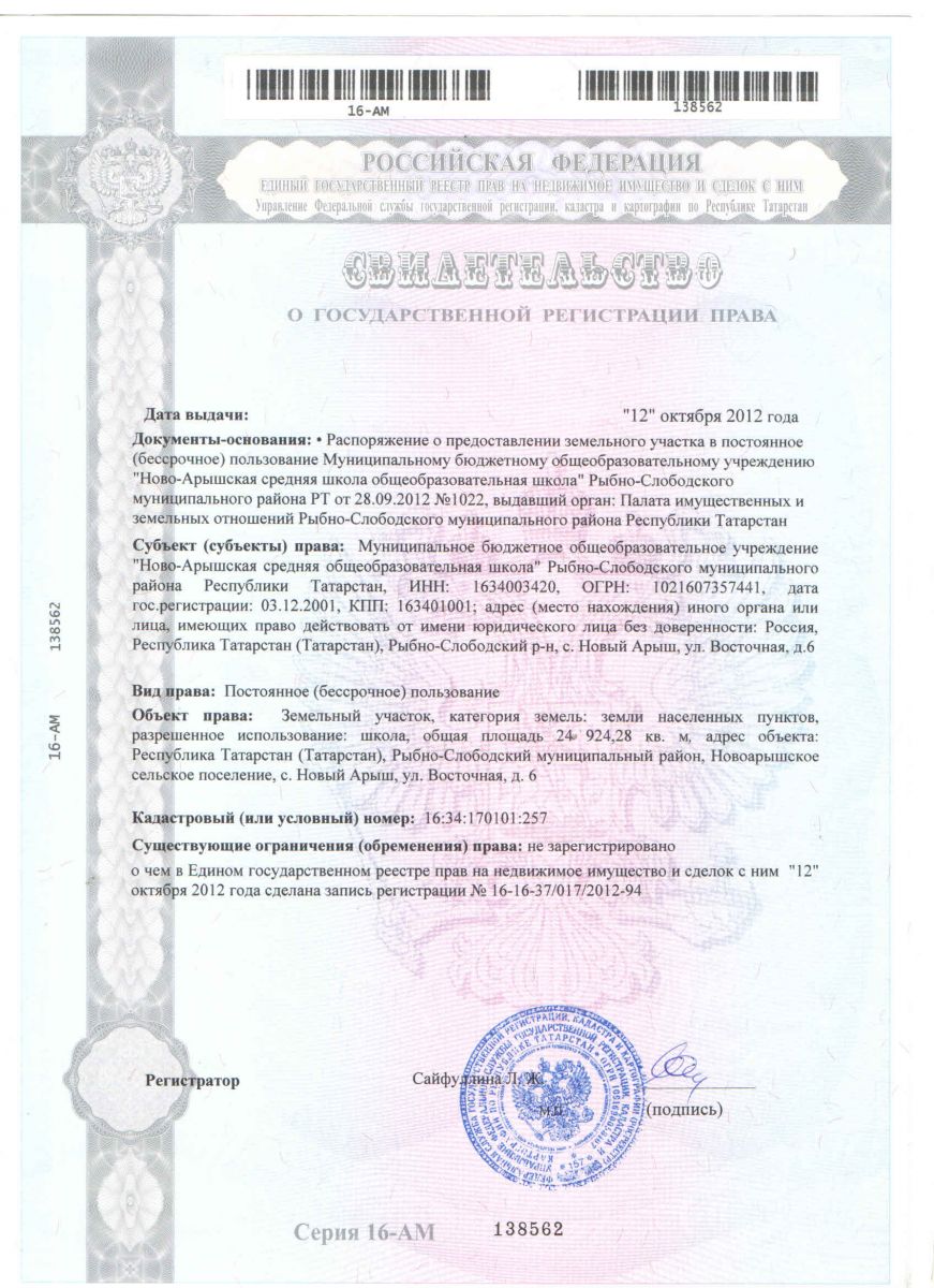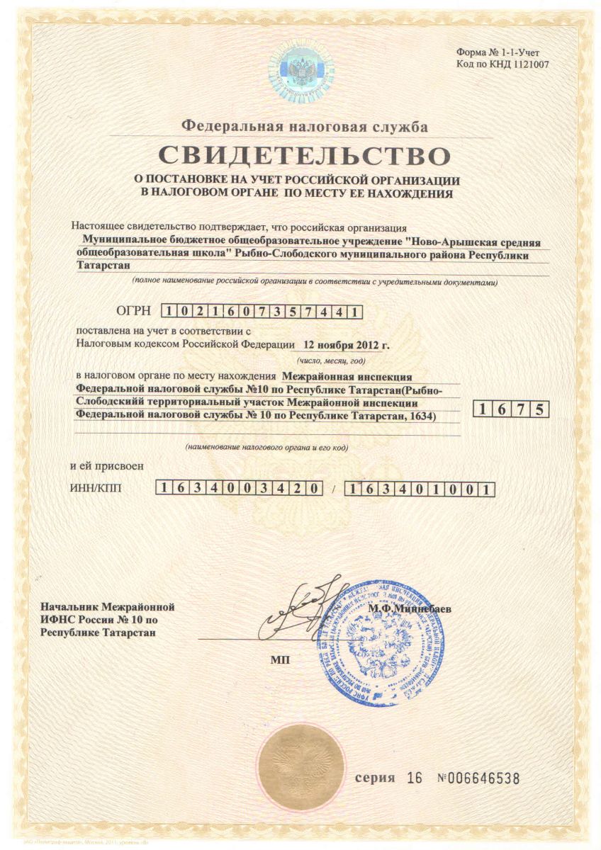 Муниципальное бюджетное общеобразовательное учреждение «Ново-Арышская средняя общеобразовательная школа» Рыбно-Слободского муниципального района Республики Татарстан/Татарстан Республикасы Балык Бистәсе муниципаль районы муниципаль бюджет гомуми белем учреждениесе «Яңа Арыш урта гомуми белем бирү мәктәбе»