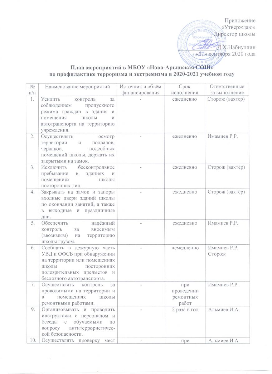 План мероприятий по профилактике терроризма и экстремизма в 2020-2021 уч.году