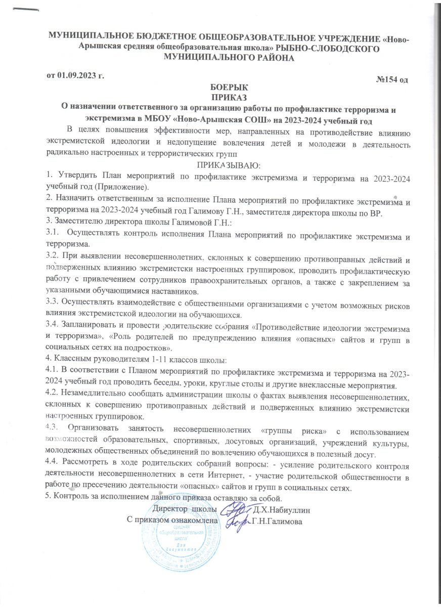 План мероприятий по профилактике и экстремизма МБОУ "Ново-Арышская СОШ" на 2024-2025 учебный год