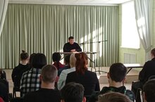 "Россия балалары"акциясе кысаларында техникумның 1,2 курс студентларының полиция начальнигы И.Р. Тимурбулатов белән очрашуы.