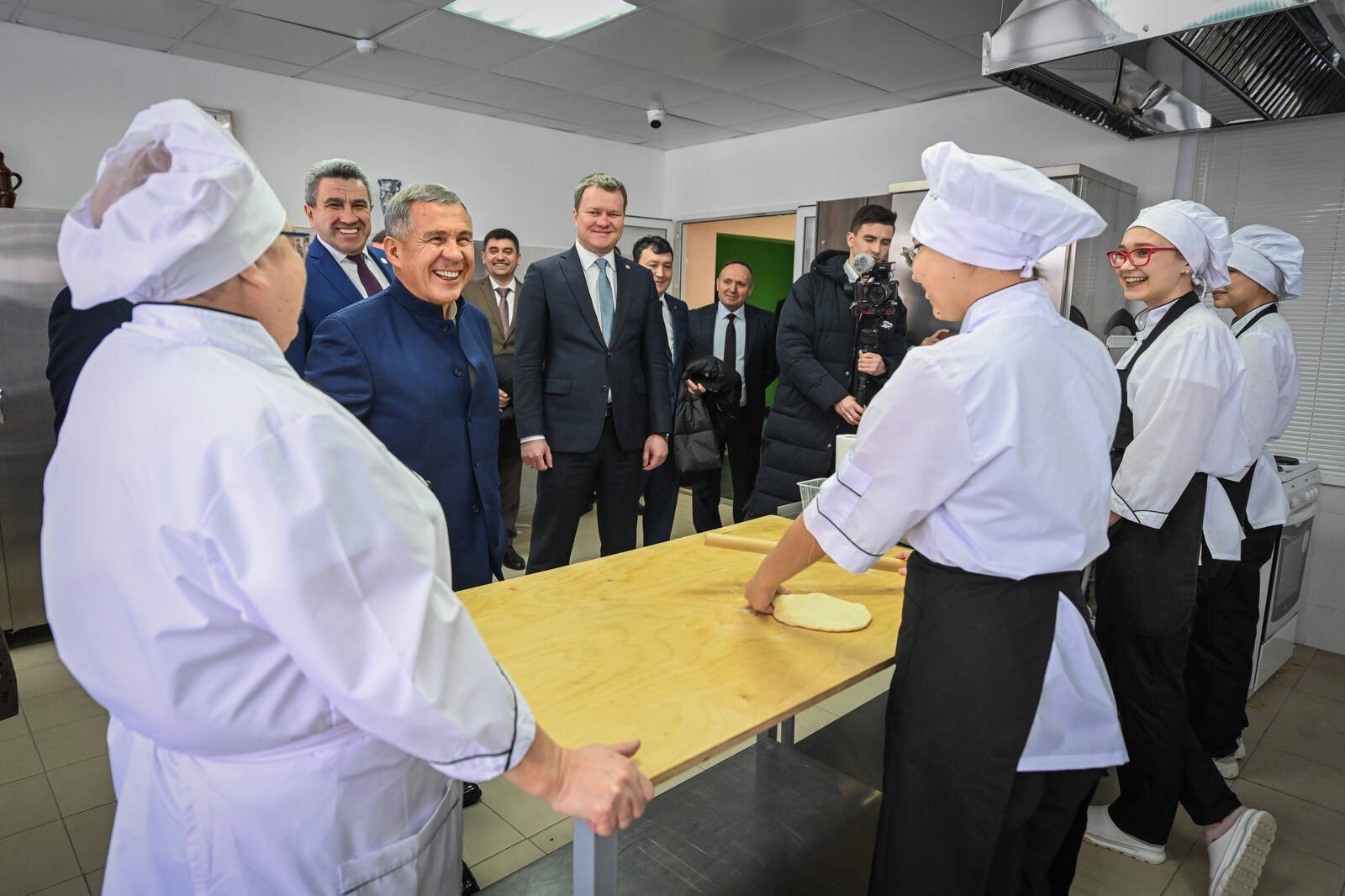 Рустам Минниханов осмотрел учебные кабинеты и лаборатории практических занятии обучающиеся по специальностям: «Механизации сельского хозяйства», «Техническое обслуживание и ремонта автомобильного транспорта», «Эксплуатация и ремонт сельскохозяйственной техники и оборудования», «Технология продукция общественного питания» «Экономика и бухгалтерский учет (по отраслям)», а также по профессиям «Повар-кондитер», «Тракторист-машинист сельскохозяйственного производства».
