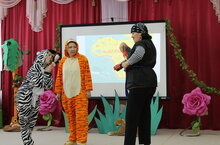 В нашем детском саду организовали интегрированное развлечение в средней и подготовительной к школе группах "Путешествие в Сафари-парк" (совместная деятельность инструктора по физической культуре, музыкального руководителя и логопеда). Дети совершили путешествие в Африку, где участвовали в спасении животных, которых захватил в плен злой Бармалей. Узнали каких животных и почему называют хищниками и травоядными, соревновались вместе с Бармалеем, спели ему веселую песню про Африку и устроили флэшмоб. Благодаря стараниям детей злодей стал добрым и все животные были освобождены из плена .