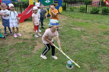 Сотрудники детского сада провели для своих воспитанников татарский народный праздник «Сабантуй». Детям рассказали об истории праздника, а потом они активно участвовали в татарских национальных забавах: перетягивали канат, прыгали в мешках, таскали ведёрки с водой на коромысле. Ребята весело провели время и остались в восторге от народного праздника.