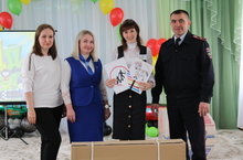 Начальник отделения в Рыбно-Слободском и Пестречинском районах отдела профилактики ТУ в г.Казани ГБУ «Безопасность дорожного движения» Егорова Татьяна Алексеевна и начальник ОГИБДД по Рыбно-Слободскому району Исмагилов Айрат Ринатович наградили всех детей памятными подарками, а детскому саду подарили самокат! Глаза детей сияли огромной радостью!!!