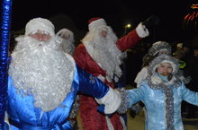 В Центре Рыбной Слободы прошел новогодний Парад с шетвием Дедов Морозов и финальным салютом. Приняли участие Дед Мороз и Снегурочка Центра детского творчества.