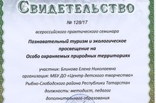 25 марта 2017 года педагоги образовательных организаций Рыбно-Слободского муниципального района РТ приняли участие в межрегиональном (всероссийском) семинаре по теме «Познавательный туризм и экологическое просвещение на ООПТ», заповедник «Кивач» с участием коллег из Карелии, проводимого на базе Музея естественной истории Казанского Кремля, г.Казань.