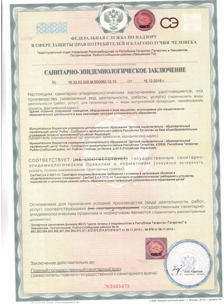 Санитарно-эпидемиологичское заключение